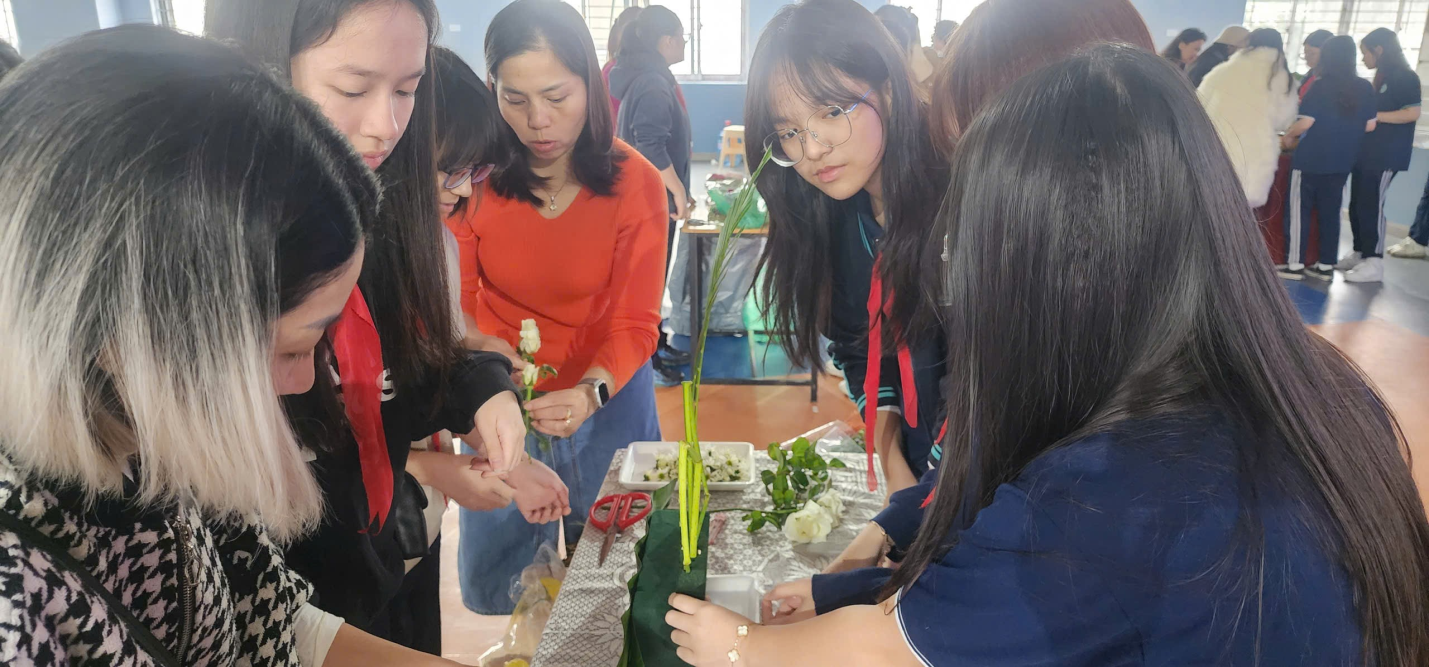 Cuộc thi trở thành một sân chơi bổ ích, nơi các bạn được thỏa sức thể hiện óc thẩm mỹ, khả năng phối màu – tạo dáng, đồng thời rèn luyện tinh thần làm việc nhóm, sự khéo léo và bản lĩnh trình bày trước đám đông. Mỗi tác phẩm hoa không chỉ đẹp về hình thức mà còn mang câu chuyện riêng, phản ánh sự biết ơn sâu sắc của học trò đối với những người đã thắp sáng tri thức và đồng hành cùng các em trong suốt hành trình học tập.