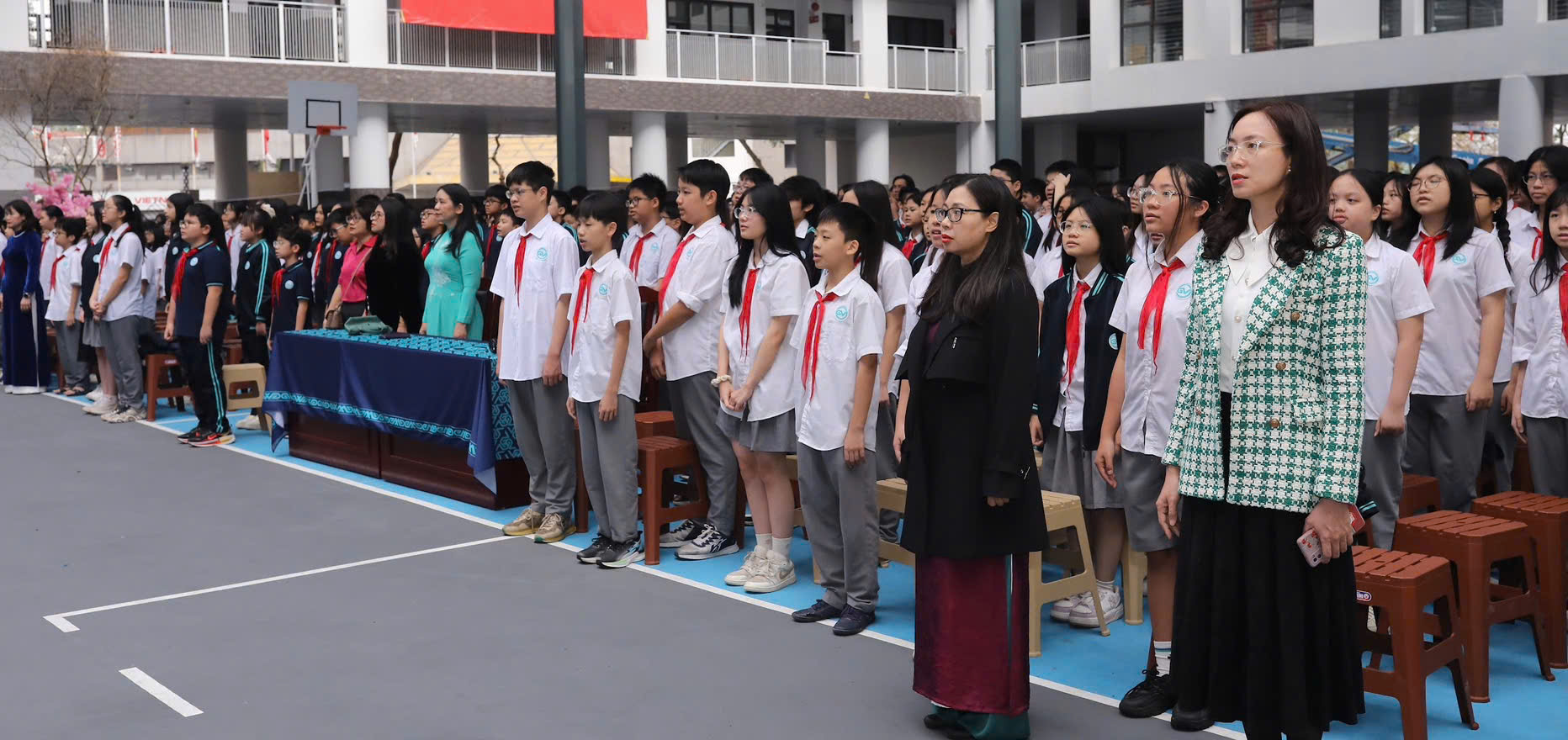 Để bắt đầu buổi lễ dưới sân trường, toàn trường đã ổn định trật tự và bắt đầu chào cờ trong niềm hân hoan.