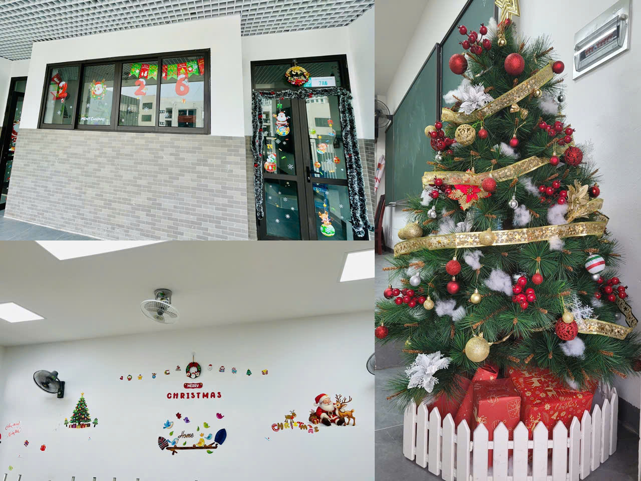 Từ sớm, cô giáo cùng các bạn trong lớp đã cùng nhau trang trí phòng học với những hình dán, cây thông và phụ kiện nhỏ xinh. Nhờ công sức của mọi người, phòng học 7A6 càng thêm lộng lẫy, xinh đẹp vào những ngày trước thềm lễ. Chiếc cây thông to lớn, đính đầy những ngôi sao, bông tuyết cùng trái cầu đầy sắc màu chủ đạo cho Noel được các bạn vô cùng thích thú. Không chỉ vậy, các cửa sổ cùng tường phòng cũng được dán và treo các hình dán ông già Noel, chú tuần lộ cùng cỗ xe kéo rất đáng yêu. Nhờ những món đồ trang trí này, các bạn học sinh 7A6 càng có thêm động lực học tập để chờ đến buổi lễ Giáng sinh an lành.