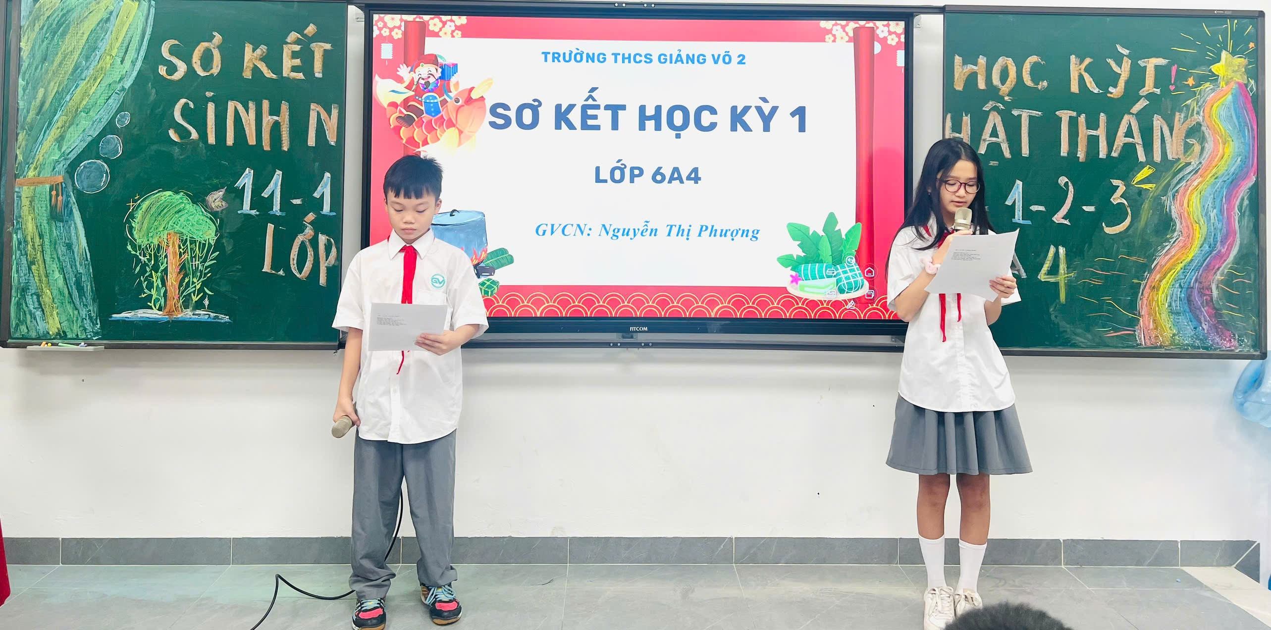 Trong không khí rộn ràng của những ngày đầu năm mới, tập thể lớp 6A4 trường THCS Giảng Võ 2 đã cùng nhau trải qua một buổi lễ sơ kết học kỳ I thật đặc biệt và ý nghĩa. Không chỉ đơn thuần là dịp để nhìn lại bảng thành tích, buổi lễ còn là một bữa tiệc ấm áp, đầy ắp tiếng cười và những kỷ niệm khó quên dưới mái nhà chung 6A4.