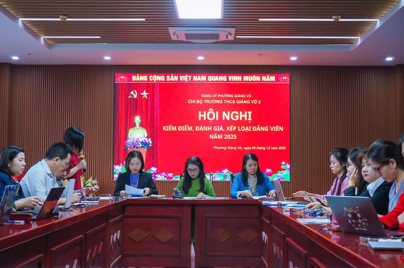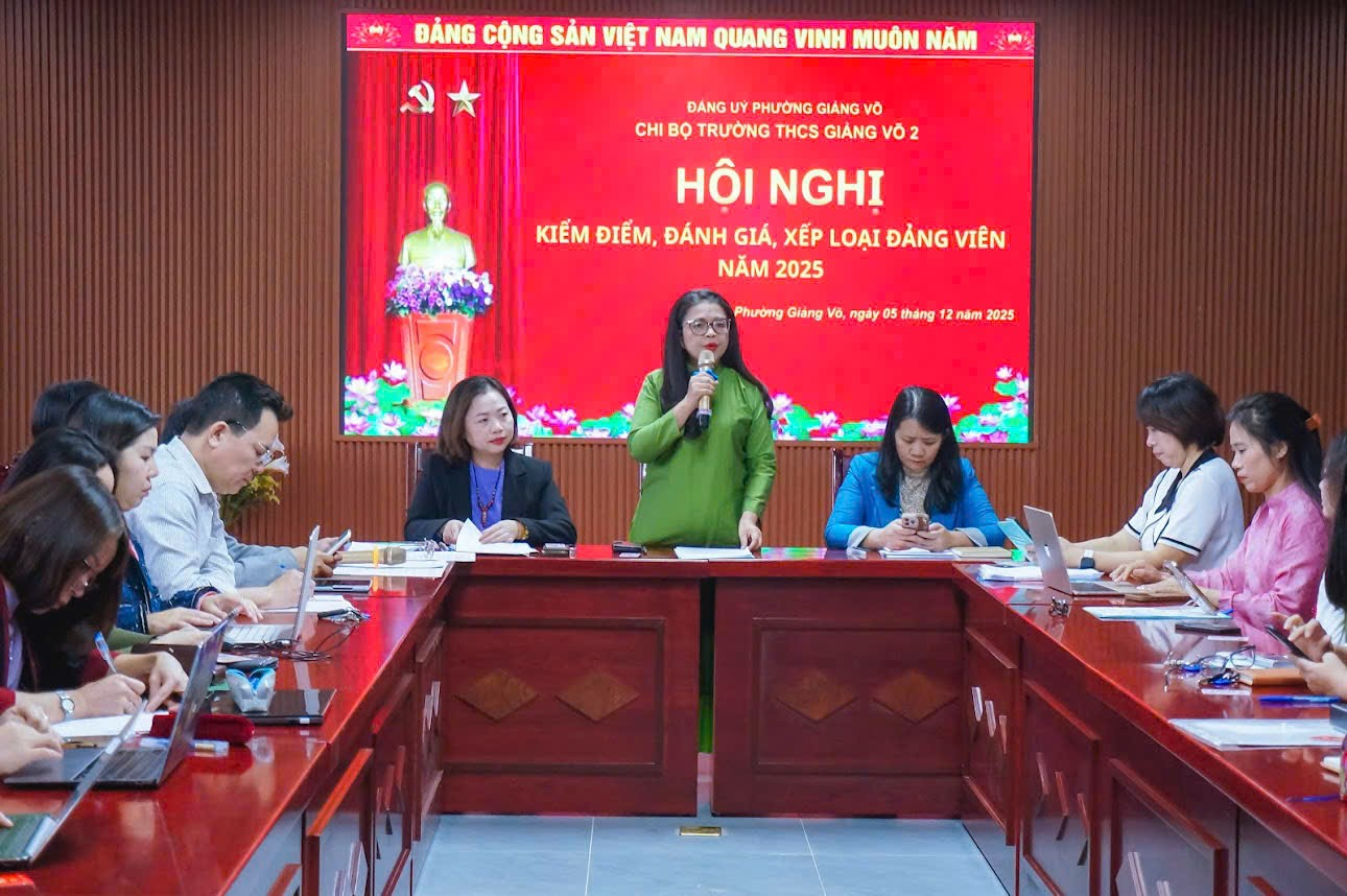 Chi bộ trường THCS Giảng Võ 2 trang trọng tổ chức Hội nghị kiểm điểm, đánh giá và xếp loại tổ chức Đảng, đảng viên năm 2025