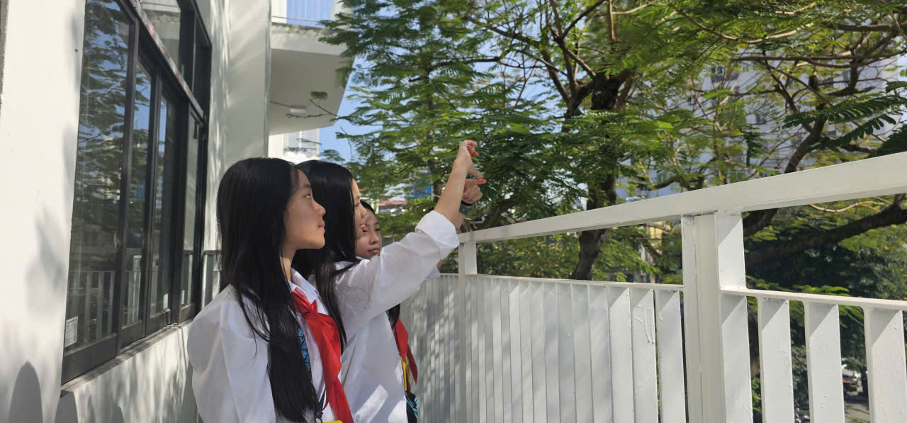 Bạn Anh Thư thì thầm với Phương Nhi khi đứng ở hành lang: “Nhi thấy không, nhìn từ đây xuống sân trường trông cứ như sân khấu của một concert siêu to. Trường mình “đỉnh” quá””