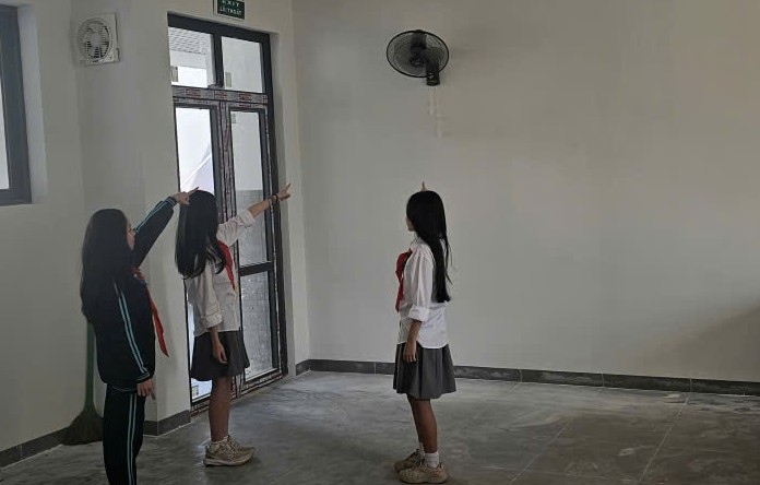 Rời tầng 5, chúng em tiếp tục xuống tầng 4, tầng 3 và tầng 2 để tham quan các phòng học. Càng đi, chúng em càng háo hức. Phòng học nào cũng mới tinh, tường còn thơm mùi sơn, bàn ghế sáng bóng, thiết bị dạy – học đang dần được hoàn thiện. Bạn nào cũng trầm trồ và hào hứng đoán xem lớp mình sẽ được bố trí ở phòng nào. Các bạn 6A2 bắt đầu bàn tán về việc trang trí lớp mới: góc đọc đặt chỗ nào, trang trí bảng tin theo chủ đề gì, có nên làm thêm góc hoa sưa nhỏ để tạo “chất Giảng Võ 2” hay không.