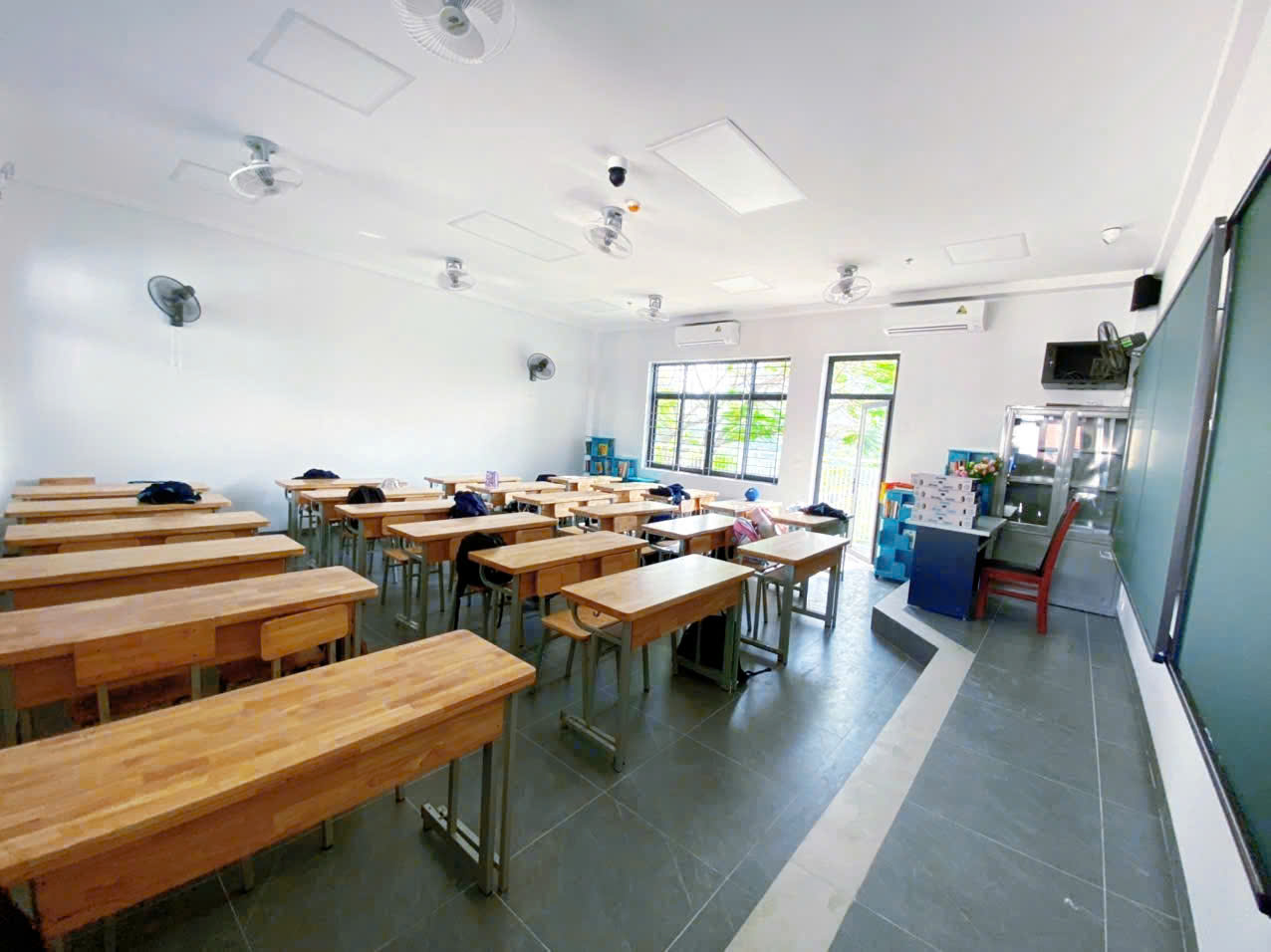 Phòng học mới của 6A2 khang trang và tràn ngập ánh sáng tự nhiên.
