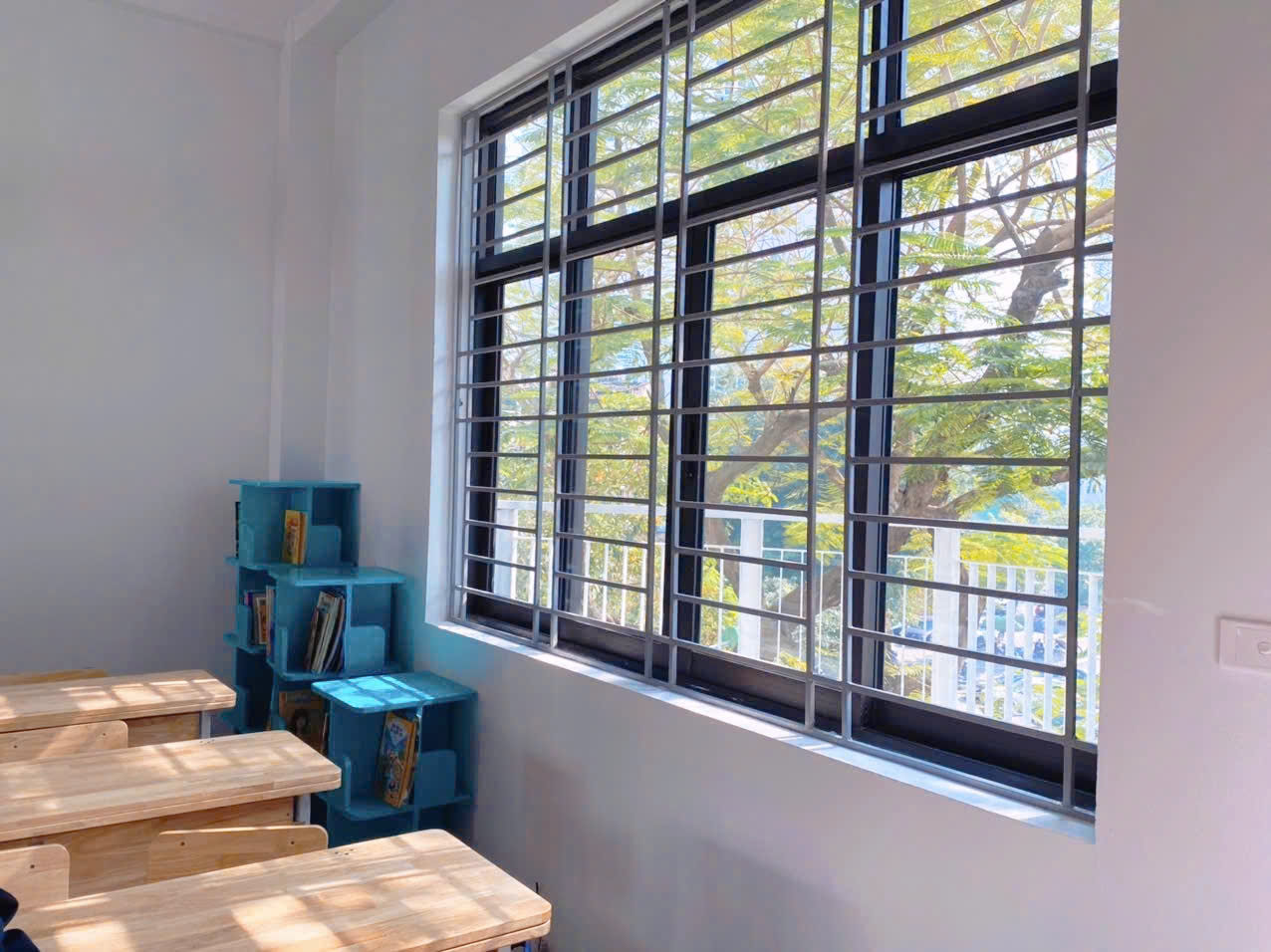 Phòng học mới sạch sẽ và ấm cúng. Ánh sáng tự nhiên từ ô cửa lớn tràn vào khiến căn phòng lúc nào cũng bừng sáng, tạo cảm giác dễ chịu ngay từ khi bước vào.
