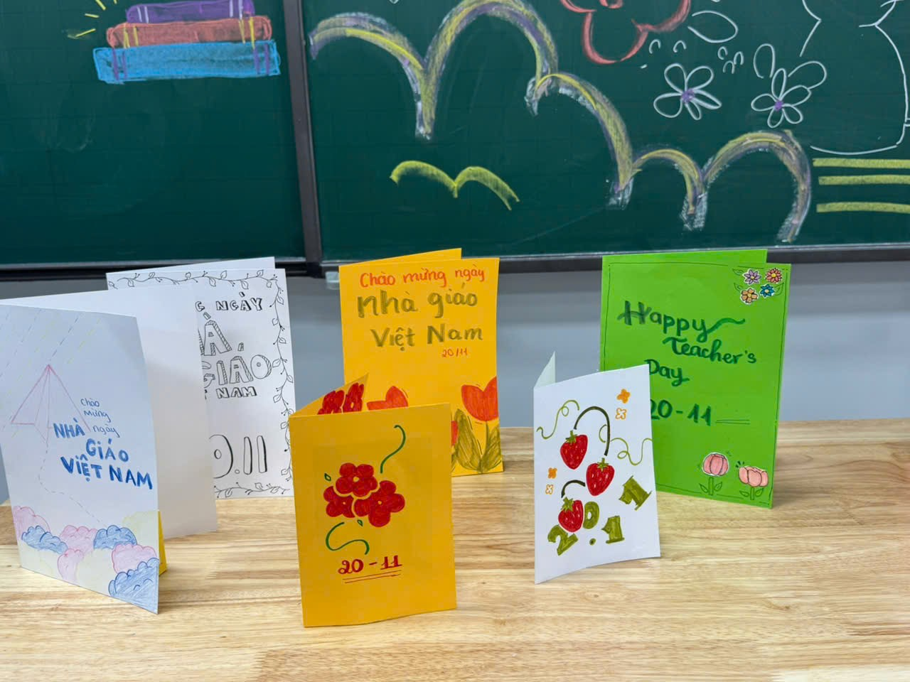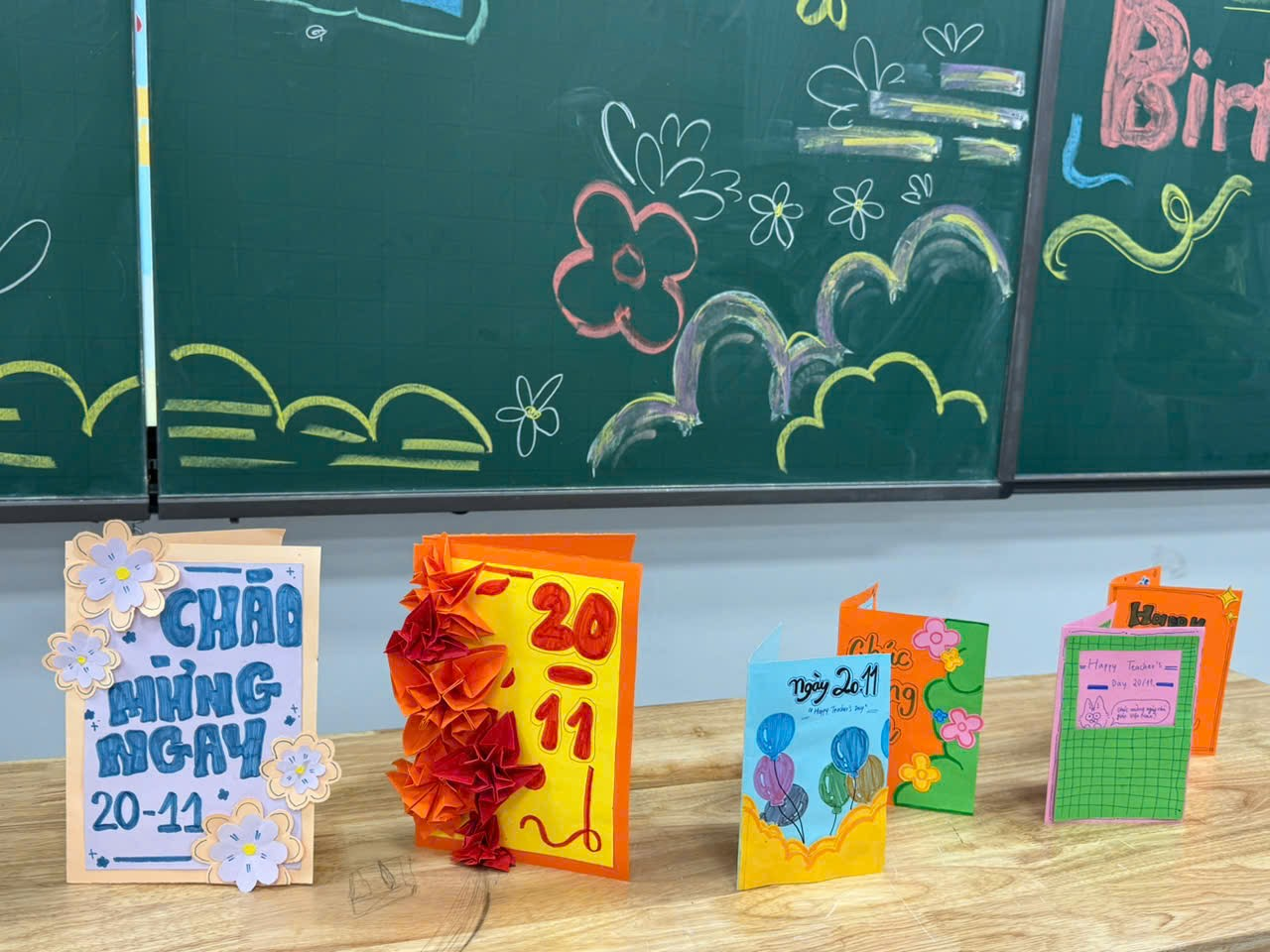 Không chỉ là một tấm thiệp, đó còn là tình cảm biết ơn mà tập thể lớp muốn gửi đến các thầy cô bộ môn và cô giáo chủ nhiệm. Bên cạnh thiệp, lớp còn chuẩn bị những phần quà xinh xắn dành tặng thầy cô. Mỗi món quà được lựa chọn và gói ghém cẩn thận, thể hiện sự trân trọng đối với những người đã dành cả tâm huyết cho việc dạy dỗ.