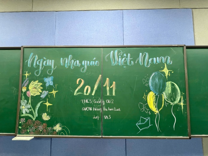 Các bạn nữ đã khéo léo trang trí bảng với chủ đề 20/11