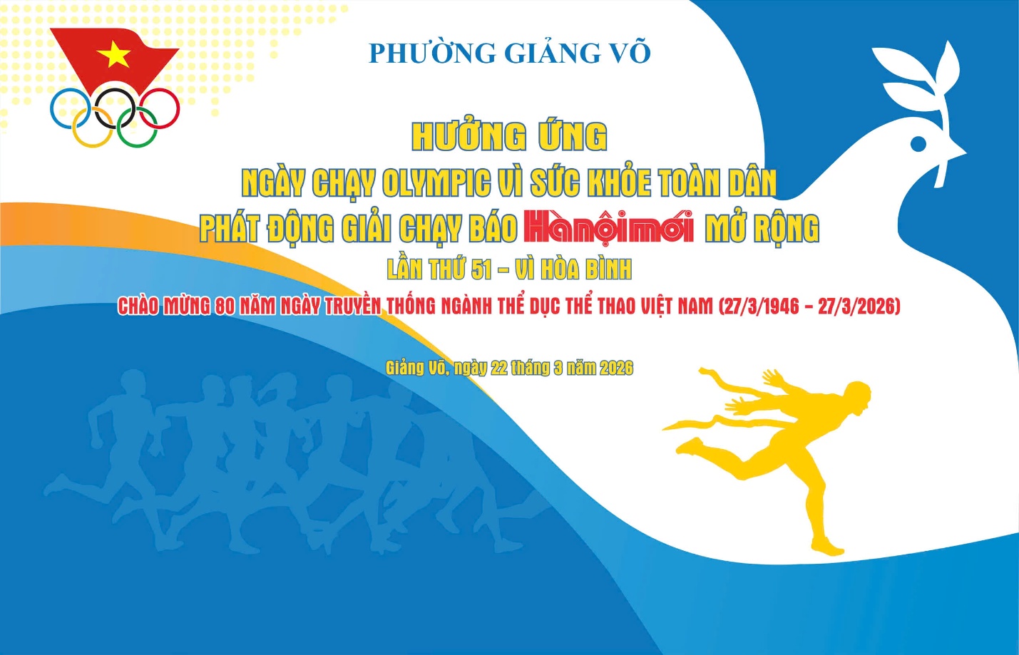 Sáng ngày 22/3/2026, tại trường THCS Giảng Võ 2, Ủy ban nhân dân phường Giảng Võ đã tổ chức Ngày chạy Olympic vì sức khỏe toàn dân và phát động Giải chạy Báo Hà Nội mới mở rộng lần thứ 51 – Vì hòa bình, thu hút sự tham gia của đông đảo cán bộ, nhân dân và học sinh trên địa bàn.