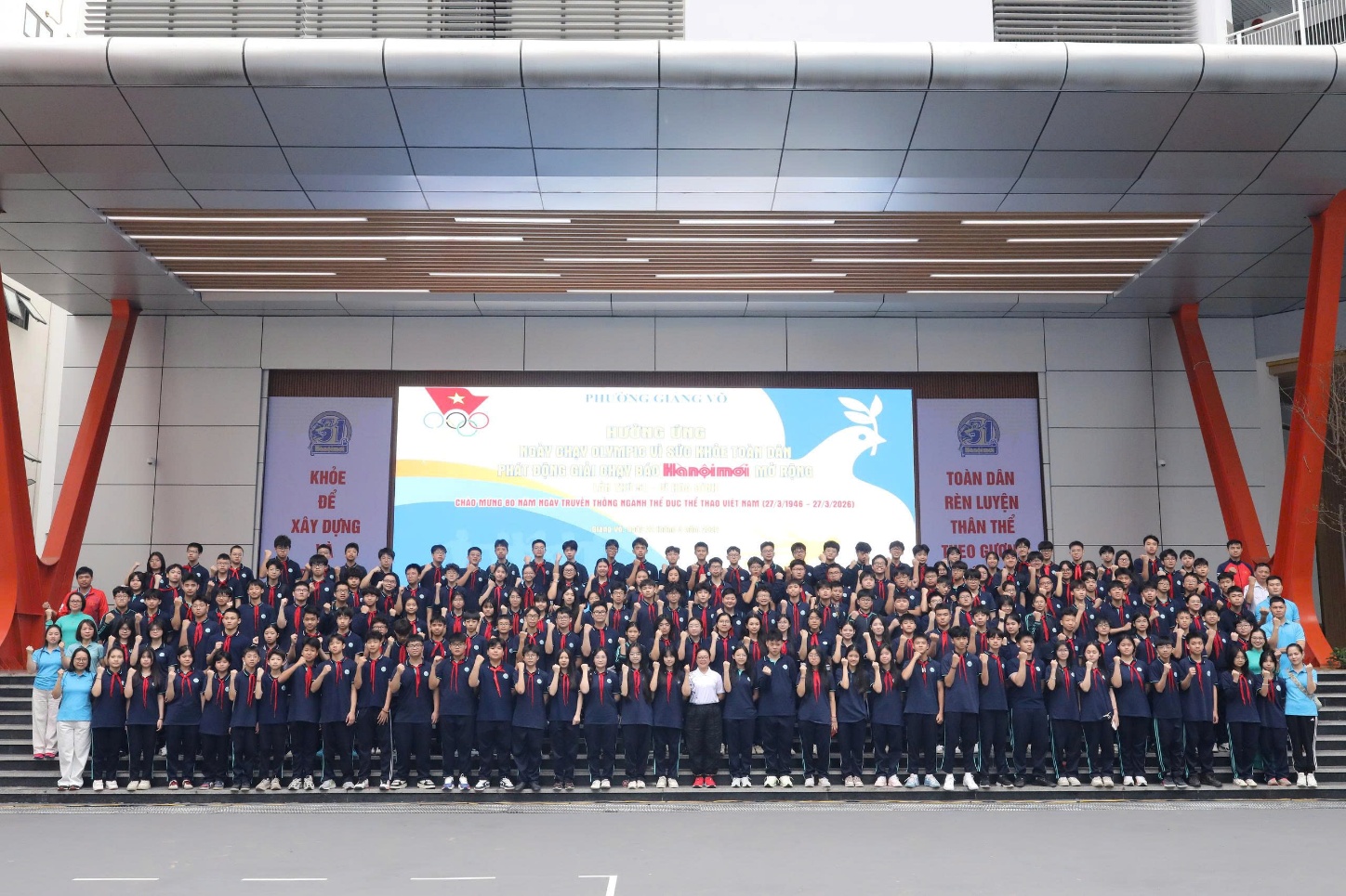 180 vận động viên Trường THCS Giảng Võ 2 tham gia Ngày chạy Olympic vì sức khỏe toàn dân.