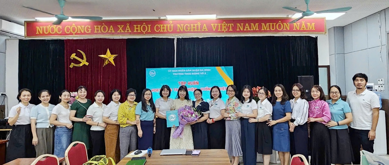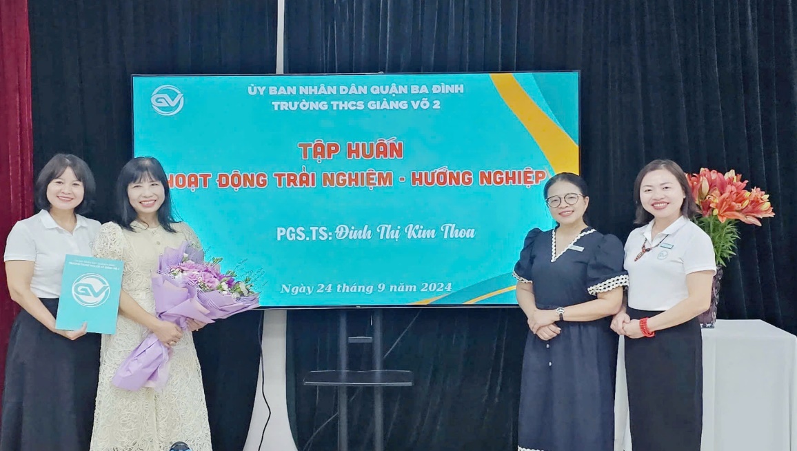 Ngày 25/09/2024, Trường THCS Giảng Võ 2 đã tổ chức buổi tập huấn chuyên đề về "Hoạt động trải nghiệm, hướng nghiệp" dành cho giáo viên, nhằm nâng cao nhận thức và năng lực tổ chức các hoạt động này theo chương trình giáo dục phổ thông mới. Buổi tập huấn được chủ trì bởi PGS.TS. Đinh Thị Kim Thoa – Tổng Chủ biên Chương trình Hoạt động trải nghiệm và Hoạt động trải nghiệm, hướng nghiệp – đã mang đến cho các thầy cô giáo hai trường THCS Giảng Võ 2 và THCS Nguyễn Trãi nhiều kiến thức giá trị và phương pháp thực tiễn trong việc triển khai tại các nhà trường.