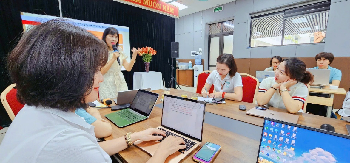Phát biểu tại buổi tập huấn, cô Hiệu trưởng Phạm Thị Hương Giang chia sẻ: "Nhà trường luôn coi trọng việc giáo dục toàn diện, trong đó, hoạt động trải nghiệm và hướng nghiệp đóng vai trò quan trọng. Chúng tôi mong muốn mỗi học sinh của Trường THCS Giảng Võ 2 không chỉ nắm vững kiến thức mà còn phát triển được những kỹ năng thiết yếu, góp phần xây dựng nền tảng cho tương lai của các em."