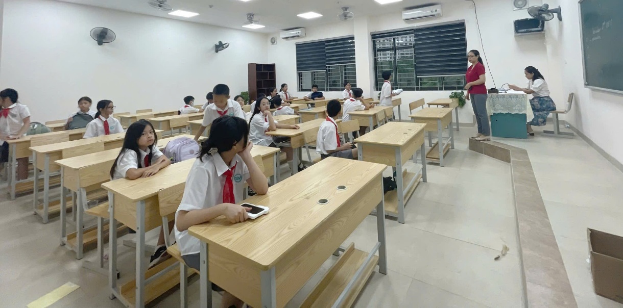 Ban Giám hiệu sắp xếp học sinh mà bố mẹ tắc đường chưa kịp tới đón tập trung tại phòng Hội đồng sư phạm của nhà trường
