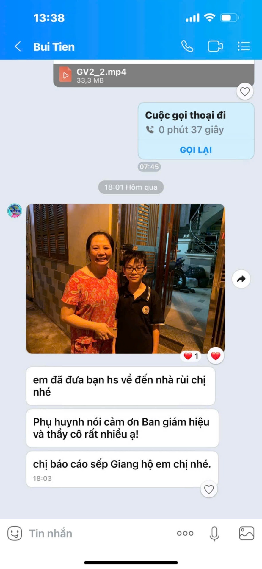 Học sinh cuối cùng để lại xe đạp tại trường và được thầy Bùi Công Tiến đưa về tận nhà ở phố La Thành lúc 18h ngày 06/09/2024
