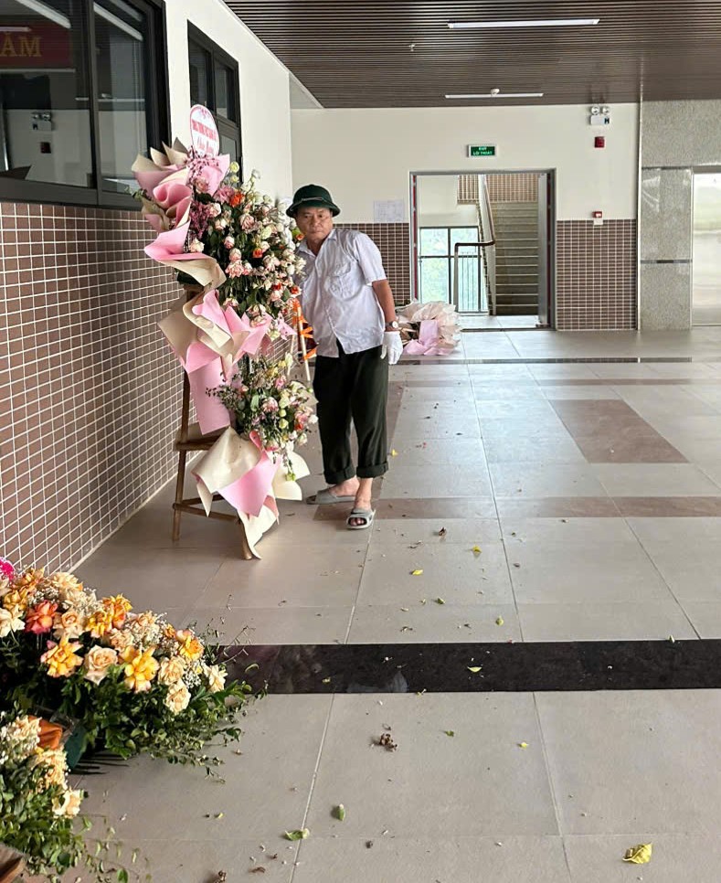Các bác bảo vệ thu dọn các cây hoa để đảm bảo an toàn