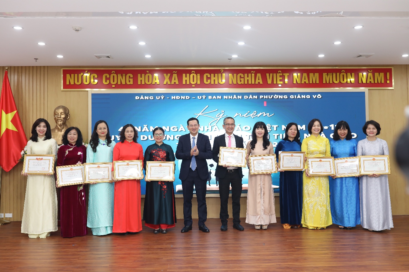 Cũng trong buổi lễ, cô giáo Nguyễn Ngọc Anh đại diện đội ngũ giáo viên phường Giảng Võ phát biểu, gửi lời tri ân tới các thế hệ nhà giáo và thể hiện quyết tâm tiếp tục đổi mới, sáng tạo, xây dựng môi trường giáo dục nhân văn, chất lượng.