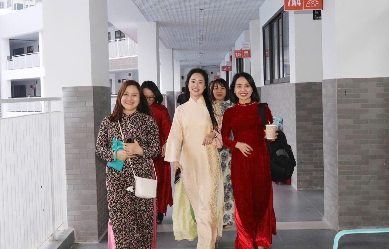 Những tà áo dài rực rỡ tô điểm hành lang lớp học, mang theo nụ cười tươi và sự nhiệt huyết của các cô giáo. Mỗi bước chân nhẹ nhàng trên hành lang, mỗi giờ lên lớp say mê, mỗi ánh mắt trìu mến dành cho học sinh… đều trở nên đặc biệt hơn khi được tôn lên bởi vẻ đẹp truyền thống của tà áo dài Việt Nam. Không chỉ là một trang phục quen thuộc, áo dài còn là biểu tượng của bản sắc văn hóa dân tộc – nơi kết tinh vẻ đẹp dịu dàng, đằm thắm nhưng cũng đầy bản lĩnh và trí tuệ của người phụ nữ Việt Nam.
