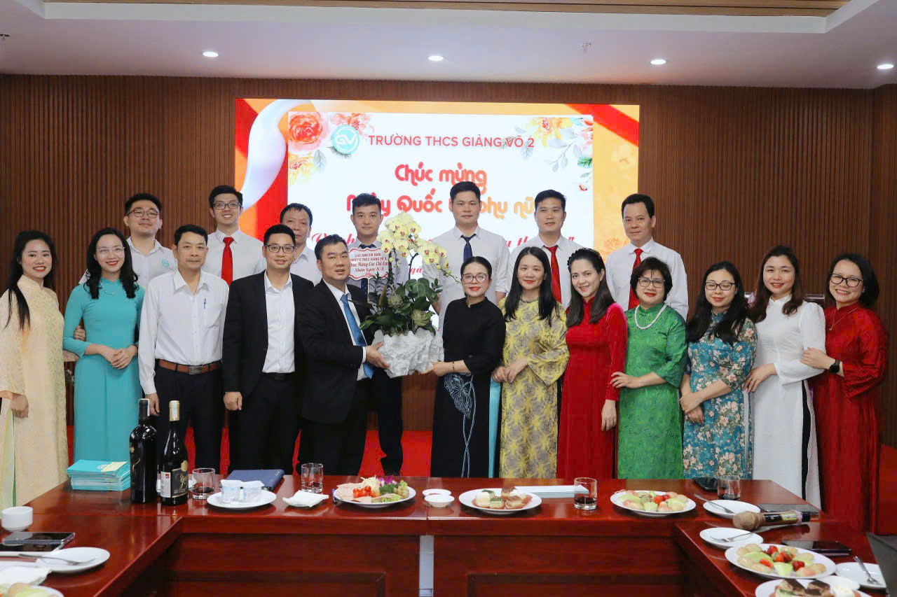 Nhân dịp kỷ niệm 116 năm Ngày Quốc tế Phụ nữ 8/3, nhà trường cũng đã tổ chức buổi gặp mặt, chúc mừng trong Hội đồng sư phạm với không khí ấm áp và thân tình. Những bó hoa tươi thắm cùng những lời chúc tốt đẹp đã được gửi tới các cô giáo – những người luôn tận tụy, yêu nghề và hết lòng vì học sinh. Trong tà áo dài duyên dáng, các cô giáo cùng nhau lưu giữ những khoảnh khắc ý nghĩa, tạo nên bầu không khí vui tươi, gắn kết trong tập thể nhà trường.