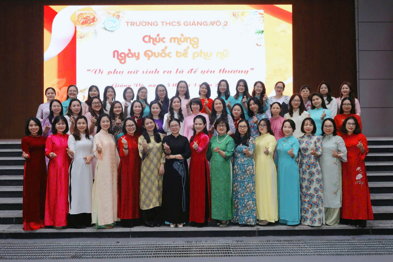 Tháng Ba về mang theo sắc xuân dịu dàng và niềm tự hào của một nửa thế giới. Trong không khí ý nghĩa ấy, từng góc sân trường, từng lớp học của trường THCS Giảng Võ 2 như bừng sáng bởi những tà áo dài thướt tha, duyên dáng của các cô giáo. Những sắc áo rực rỡ không chỉ làm đẹp thêm không gian sư phạm mà còn mang đến nguồn năng lượng tích cực, lan tỏa niềm vui và cảm hứng trong mỗi ngày dạy học.