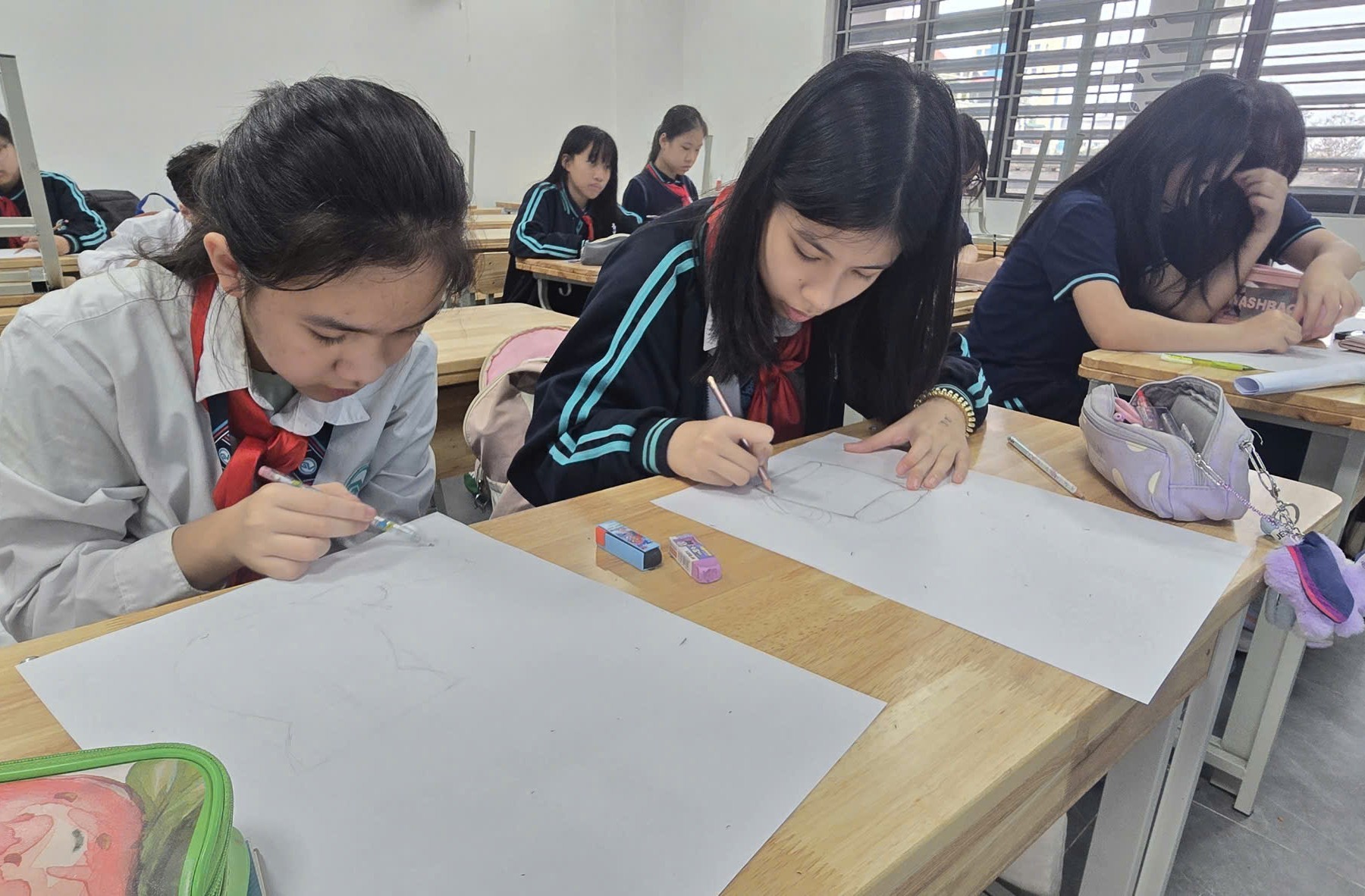 Học sinh tham gia CLB Mỹ thuật, say mê sáng tạo tác phẩm hướng tới Triển lãm tranh “Chào Xuân 2026”.