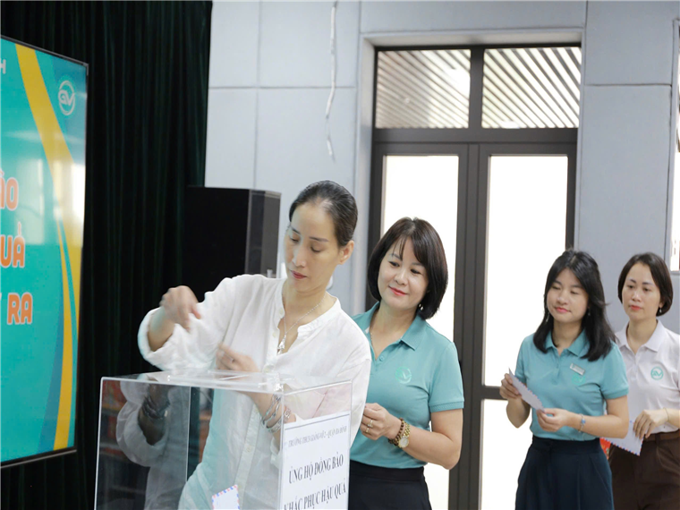 Các thầy cô giáo ủng hộ đồng bào khắc phục hậu quả cơn bão số 3 gây ra