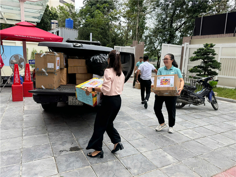 Mở đầu cho hành trình thiện nguyện, ngày 16/9/2024, nhà trường đã tổ chức chuyến thăm và gửi quà tặng cho học sinh các trường và các em thiếu nhi phường Phúc Xá – quận Ba Đình, một trong những khu vực chịu nhiều ảnh hưởng do bão.
