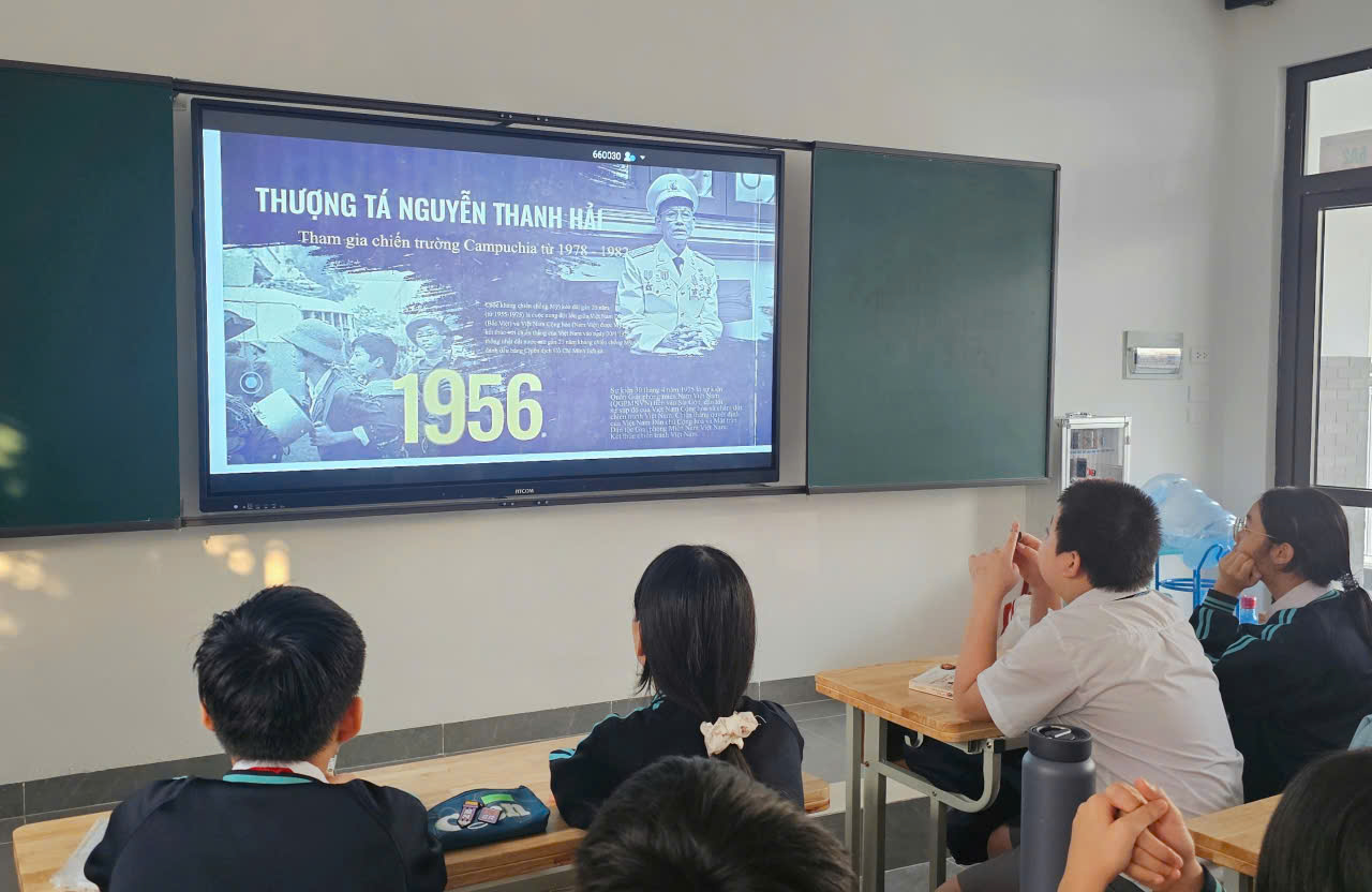 Lớp 6A2 xem lại phóng sự “Âm vang thời hoa lửa” – sản phẩm do chính học sinh trong lớp thực hiện.