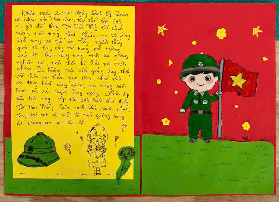 Học sinh các lớp trường THCS Giảng Võ 2 làm thiệp chúc mừng, viết lời tri ân gửi tới các chiến sĩ nhân kỉ niệm ngày 22/12.