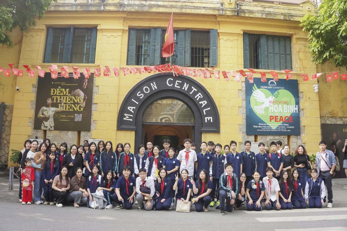 Học sinh các lớp 8A2, 8A3, 8A6 tham gia hoạt động tìm hiểu truyền thống cách mạng tại Nhà tù Hỏa Lò.
