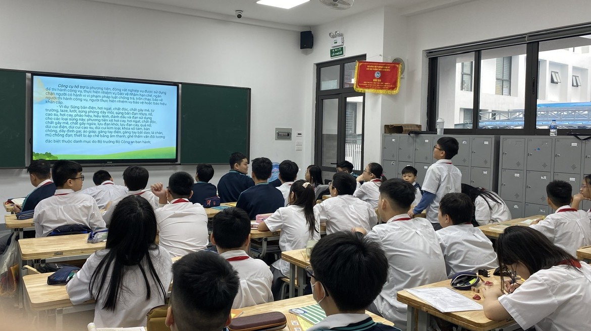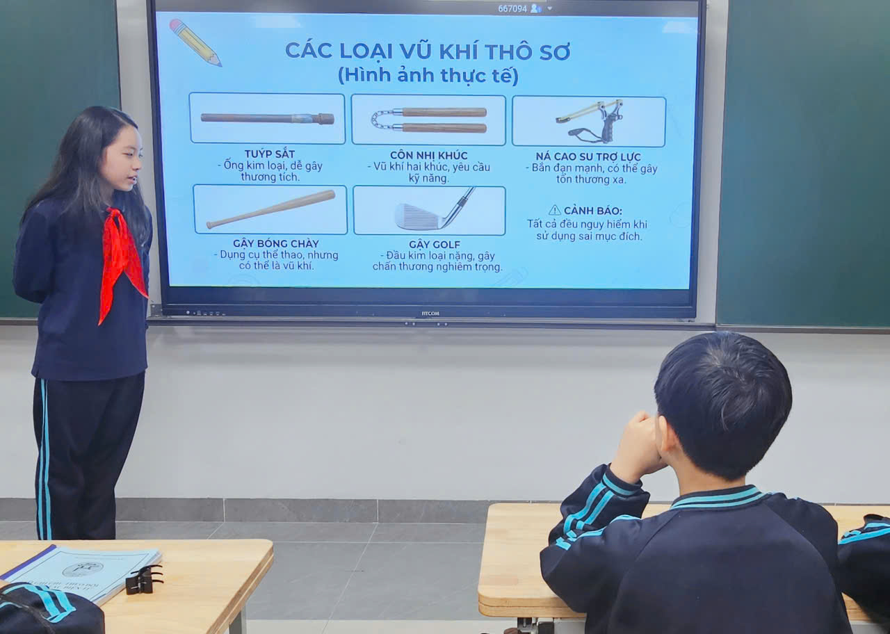 Từ đó, nhà trường định hướng học sinh nâng cao ý thức tự giác, tuyệt đối không sử dụng, không tàng trữ, không mua bán, không vận chuyển, không tự chế vũ khí, vật liệu nổ và công cụ hỗ trợ trái phép; không chạy theo các trào lưu nguy hiểm trên mạng xã hội; không mang các vật dụng có nguy cơ gây mất an toàn vào trường học.