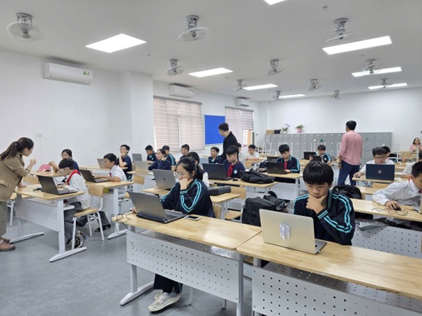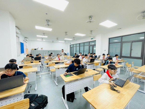 Trong không khí nghiêm túc nhưng đầy hào hứng, các thí sinh đã hoàn thành bài thi với tinh thần tập trung cao độ. Dưới sự hướng dẫn tận tình của các thầy cô Nhóm Tin – Tổ Tự nhiên 1 và sự giám sát chặt chẽ của Ban tổ chức, học sinh thực hiện bài thi trực tiếp trên máy tính, làm quen với hình thức kiểm tra, đánh giá Tin học theo chuẩn quốc tế.