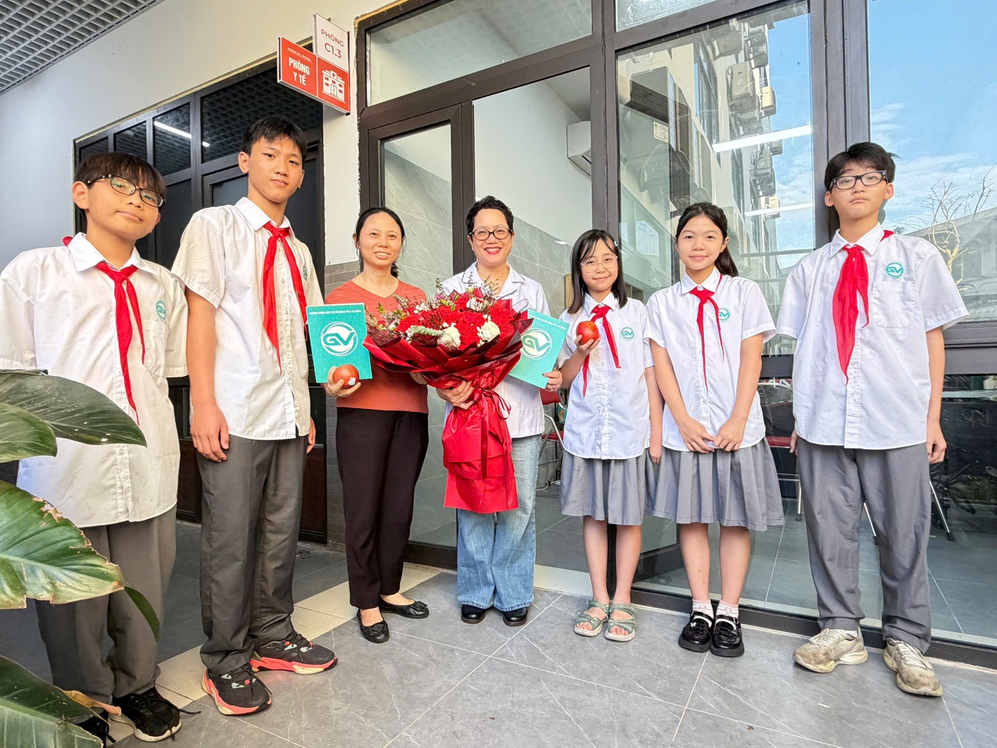 Học sinh trường THCS Giảng Võ 2 tặng hoa tri ân các cán bộ Y tế – những người thầm lặng chăm sóc và bảo vệ sức khỏe học đường mỗi ngày.