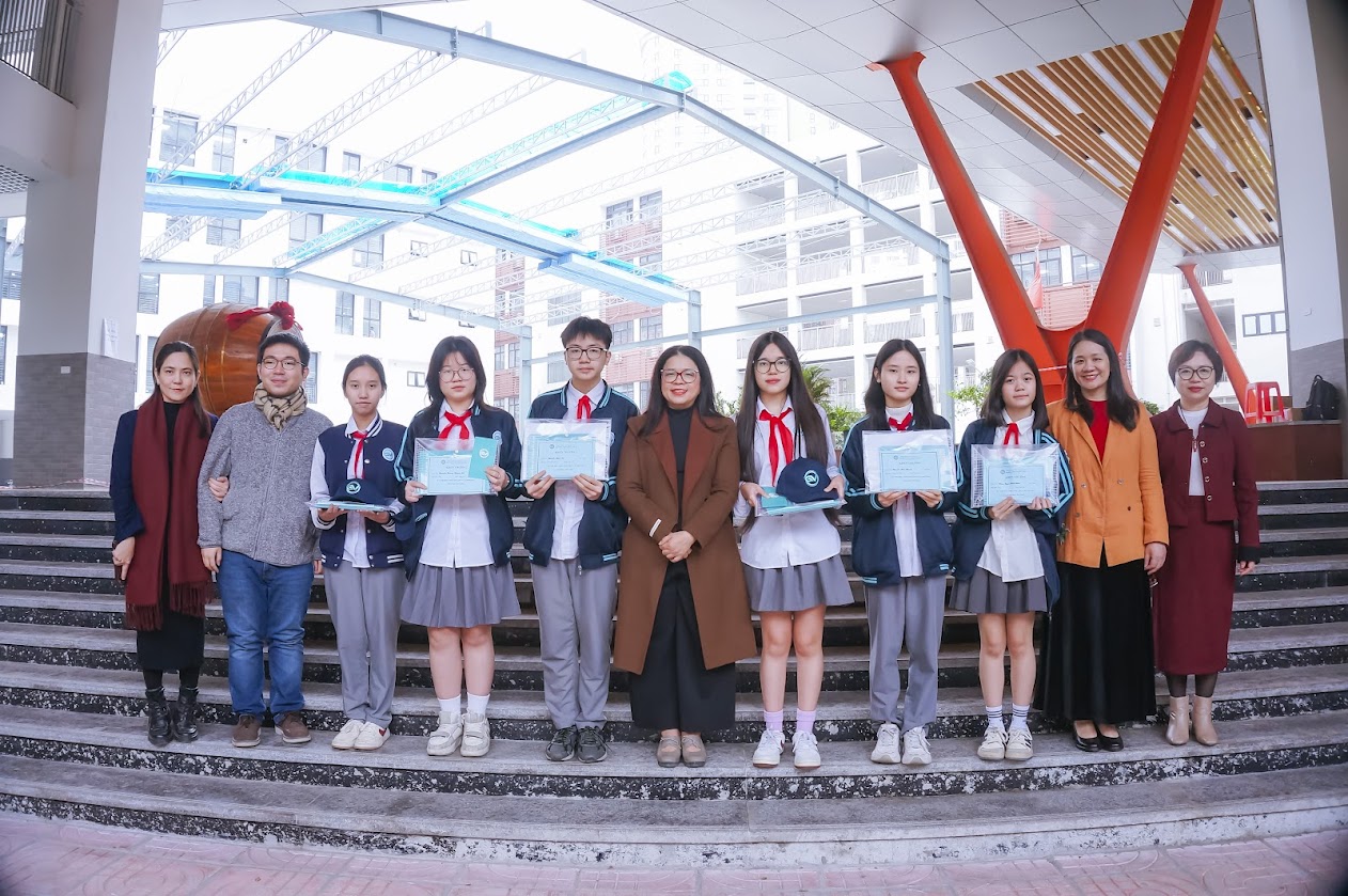 Ban Giám hiệu nhà trường cùng đội tuyển môn Ngữ văn tham dự Kỳ thi học sinh giỏi cấp Thành phố do cô giáo Đoàn Diệu Anh (đứng ngoài cùng bên trái) và thầy Nhữ Nhật Minh (đứng thứ 2 từ trái qua phải) trực tiếp giảng dạy.