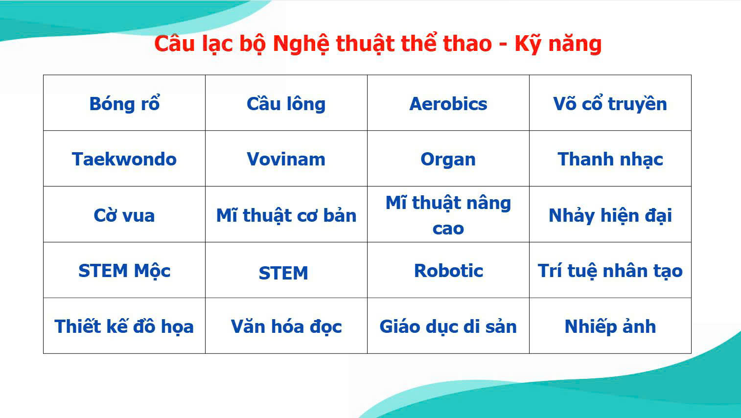 Nhà trường triển khai tổ chức các câu lạc bộ ngoại khóa để học sinh phát triển toàn diện