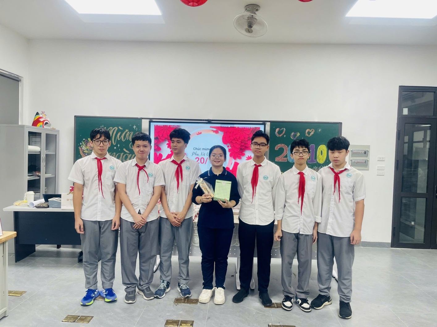 Tháng Mười lại về, mang theo những tia nắng thu vàng dịu và làn gió mát khẽ lướt qua khung cửa lớp 9A3. Sáng 20/10, căn phòng học quen thuộc bỗng trở nên rực rỡ hơn bao giờ hết. Trên bảng là dòng chữ “Chào mừng Ngày Phụ nữ Việt Nam 20/10” được viết nắn nót, bao quanh bởi hoa giấy và những dải ruy băng mềm mại – tất cả đều do các bạn nam trong lớp tự tay chuẩn bị như một món quà bất ngờ dành tặng cô giáo và các bạn nữ thân yêu..