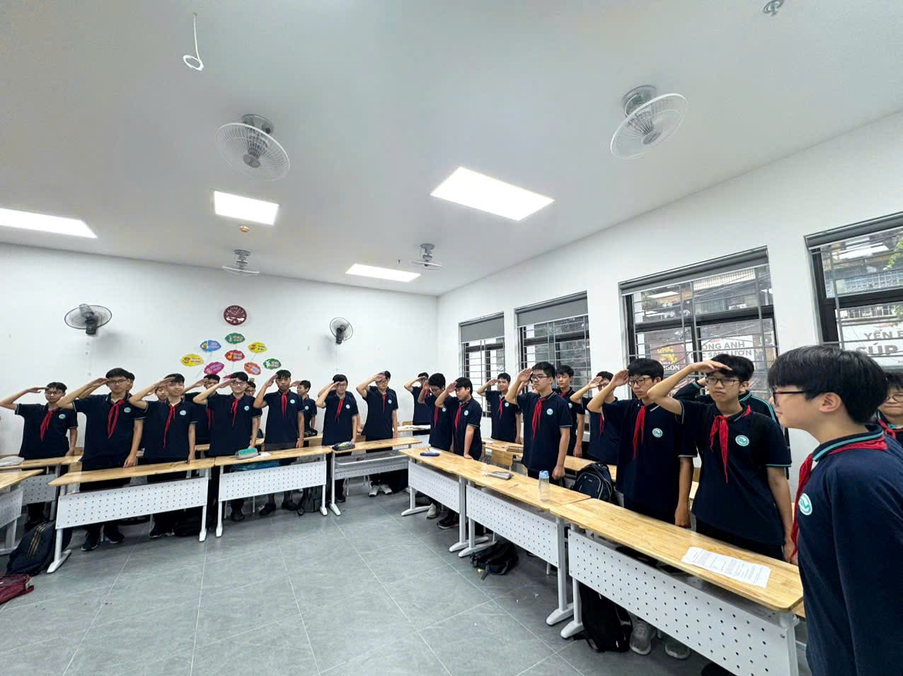 Lớp 9A4 cùng nhau hát vang Quốc ca và Đội ca