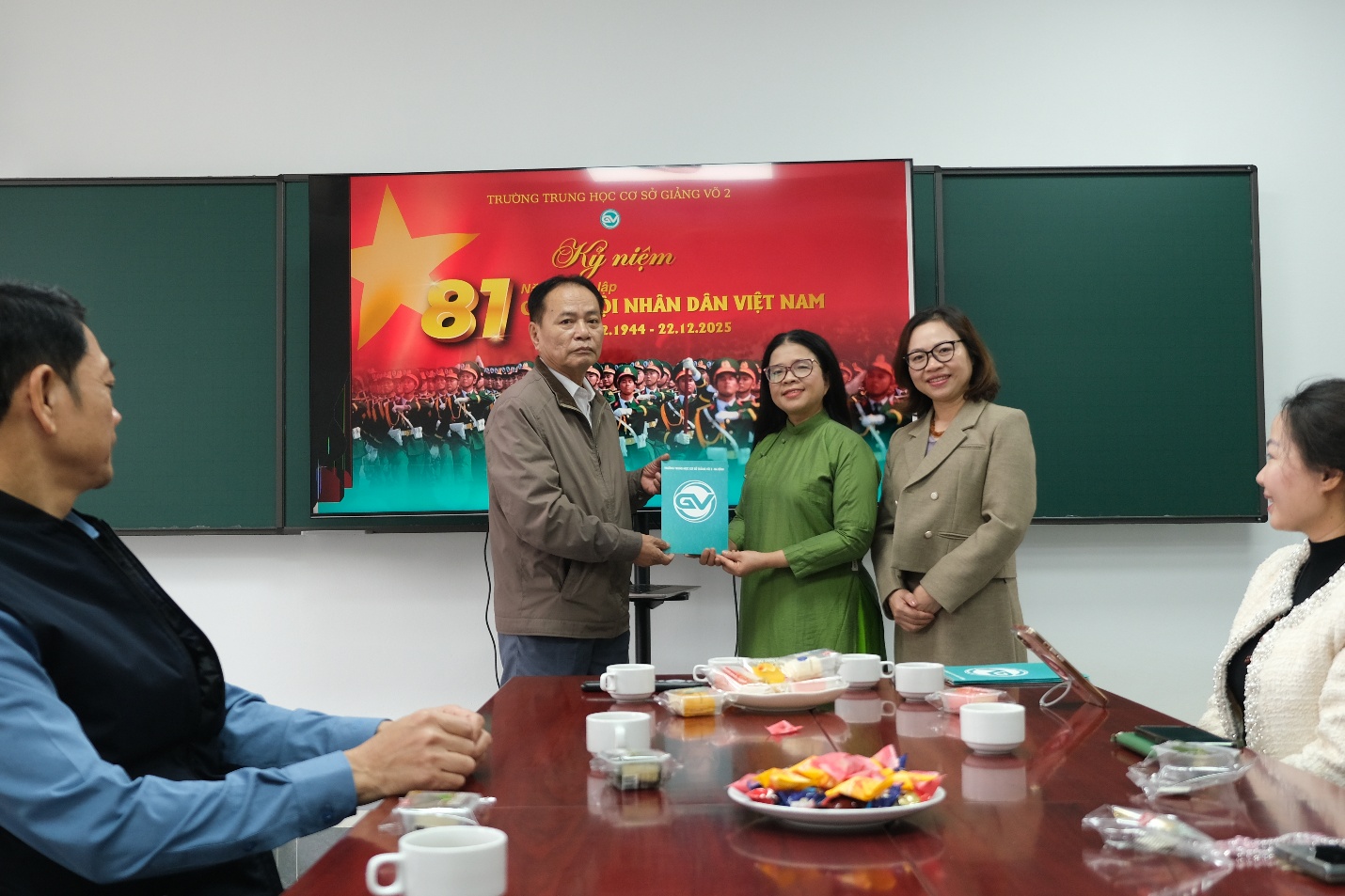 Nhân kỉ niệm 81 năm Ngày Thành lập Quân đội Nhân dân Việt Nam (22/12/1944 – 22/12/2025), trường THCS Giảng Võ 2 đã tổ chức buổi gặp mặt các đồng chí cựu quân nhân và thân nhân quân nhân đang công tác tại nhà trường trong không khí trang trọng, ấm áp và đầy nghĩa tình.