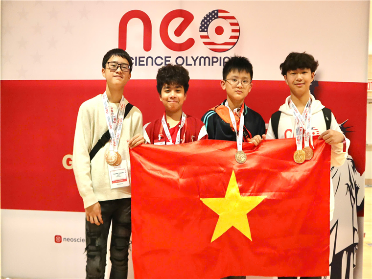 Học sinh lớp 8A1 trường THCS Giảng Võ 2 trong đoàn Việt Nam tham dự chung kết cuộc thi Olympic Khoa học quốc tế NEO
