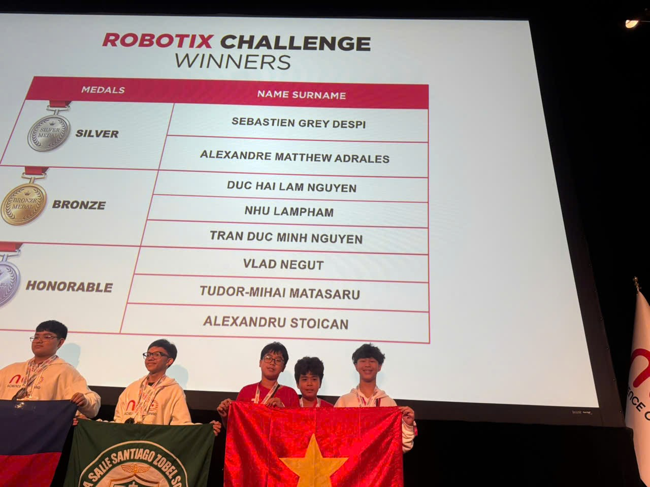 Nơi đây, các “chiến binh nhỏ” không chỉ thi đấu bằng trí tuệ mà còn bằng bản lĩnh, sự tự tin và tinh thần hội nhập quốc tế – những phẩm chất cần thiết để trở thành công dân toàn cầu trong thế kỷ 21. Đội tuyển trường THCS Giảng Võ 2 với các thành viên của 8A1 đã đã tự tin sải bước và chinh phục thử thách. Kết quả thi đấu rực rỡ là minh chứng cho tài năng và bản lĩnh Việt: em Nguyễn Đức Hải Lâm giành Huy chương Vàng cả hai môn Toán và Khoa học tổng hợp, cùng Huy chương Đồng môn Robotics đồng đội. Hai bạn Phạm Như Lâm và Đỗ Thành Thắng đều xuất sắc đoạt Huy chương Đồng ở cả hai môn Toán và Khoa học, đồng thời cùng đồng đội đạt Huy chương Đồng Robotics. Em Lê Trường Vĩ được trao Giải Khuyến khích môn Khoa học và cũng góp mặt trong đội hình Robotics giành huy chương. Những tấm huy chương ấy không chỉ là phần thưởng xứng đáng cho nỗ lực bền bỉ, mà còn là vinh quang mang về cho Tổ quốc để hai tiếng “Việt Nam” vang lên đầy tự hào.