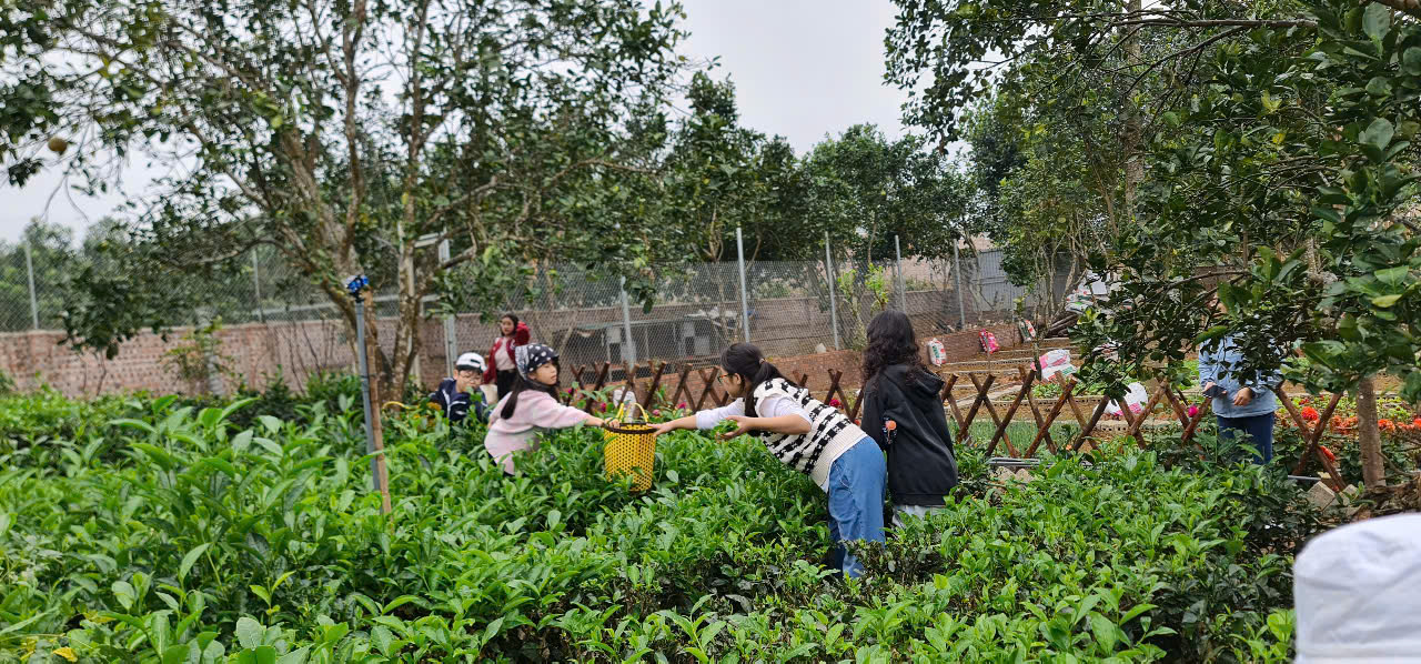 Hoạt động đầu tiên các bạn 6A2 trải nghiệm đó là hái chè. Các bạn được phát giỏ và hướng dẫn cách hái chè đúng kỹ thuật như những người nông dân thực thụ. Trong 15 phút, ai nấy đều tỉ mỉ chọn từng búp chè non, cảm nhận được sự vất vả và tỉ mẩn của nghề trồng chè. Không chỉ đơn thuần là một hoạt động trải nghiệm, đây còn là bài học thực tế giúp các bạn thêm trân trọng công sức lao động của những người nông dân.