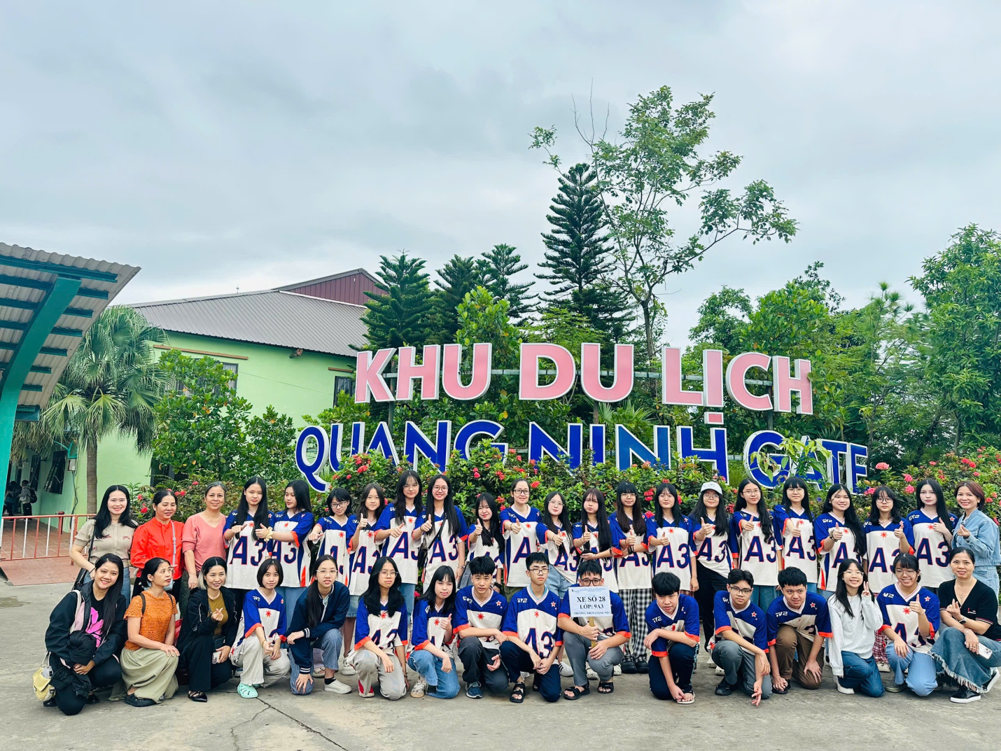 Khi hoàng hôn buông xuống, chuyến xe lại đưa chúng tôi trở về. Bên ngoài cửa kính, cánh đồng, núi non và ánh chiều tà trôi qua lặng lẽ. Ai cũng mệt, nhưng trong lòng đầy ắp niềm vui và kỷ niệm. Chuyến đi Quảng Ninh Gate không chỉ cho 9A3 chúng tôi những bức ảnh đẹp, mà còn cho chúng tôi bài học về tình bạn, sự đoàn kết và trân trọng thiên nhiên. Đó là ngày mà thầy cô và học trò trở nên gần gũi hơn, là ngày mà tiếng cười xóa tan mọi khoảng cách. Và hơn hết, đó là một dấu ấn của tuổi học trò – trong trẻo, rộn ràng, và mãi mãi đáng nhớ. Quảng Ninh Gate – nơi tuổi trẻ chúng tôi đã cùng nhau viết nên một kỷ niệm thật đẹp!