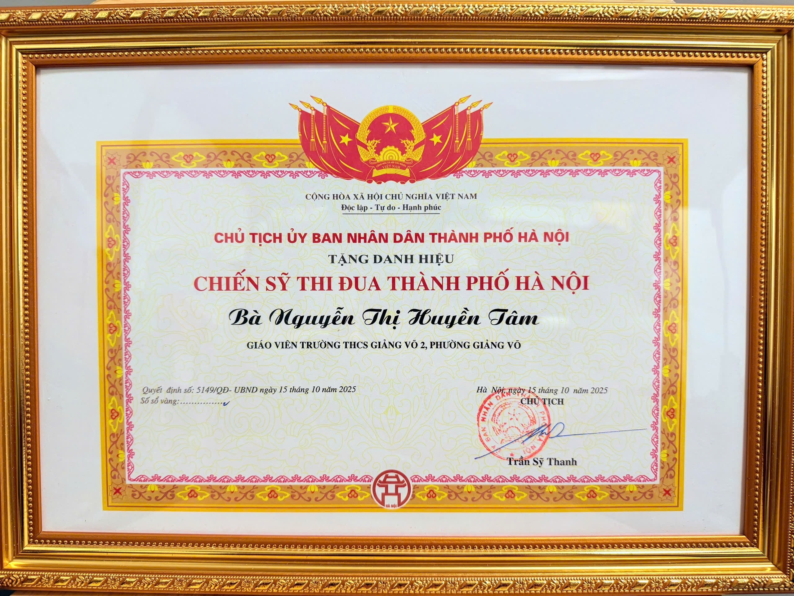 Với định hướng xây dựng môi trường giáo dục chất lượng, nhân văn và hiện đại, trường THCS Giảng Võ 2 sẽ tiếp tục đồng hành cùng những giáo viên tâm huyết như cô Huyền Tâm để viết tiếp những trang mới đầy tự hào.