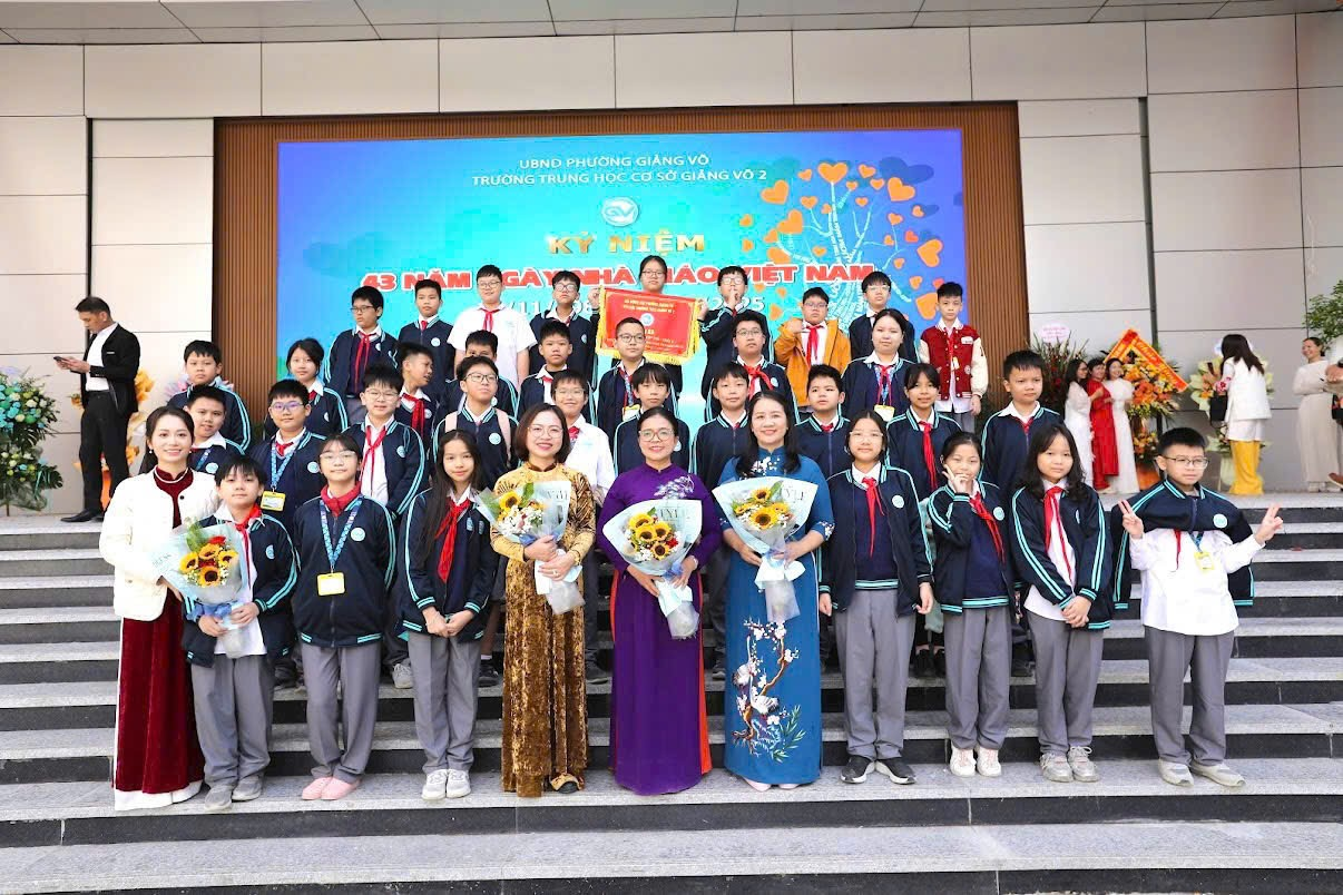 Lãnh đạo, thầy cô giáo và các em học sinh Phường Giảng Võ rạng rỡ trong Lễ kỷ niệm Ngày Nhà giáo Việt Nam và Tuyên dương nhà giáo tiêu biểu năm 2025.