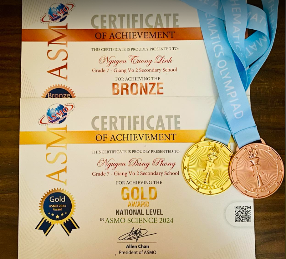 Điều tuyệt với đã đến với chúng tớ khi chúng tớ lọt vào vòng chung kết cuộc thi quốc tế ASMO môn KHTN vòng quốc gia và bất ngờ được huy chương đồng của chị và huy chương vàng của em.