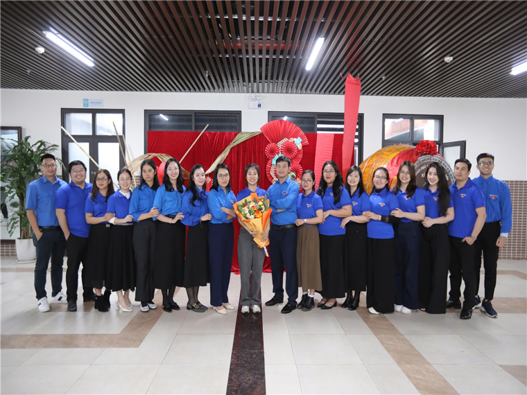 Tập thể chi đoàn giáo viên chụp ảnh lưu niệm cùng Ban giám hiệu và đại diện Đoàn phường Giảng Võ