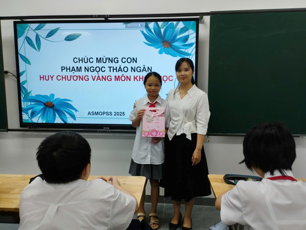 Gửi lời tri ân đến thầy cô và gia đình – những người đã luôn yêu thương, động viên, Thảo Ngân bày tỏ: “Tấm Huy chương Vàng này sẽ là động lực để em tiếp tục cố gắng và theo đuổi đam mê của mình.”Thành công hôm nay không chỉ là kết quả của sự nỗ lực cá nhân mà còn là minh chứng cho tinh thần học tập, sự gắn kết và khát vọng vươn lên của tập thể lớp 6A9.