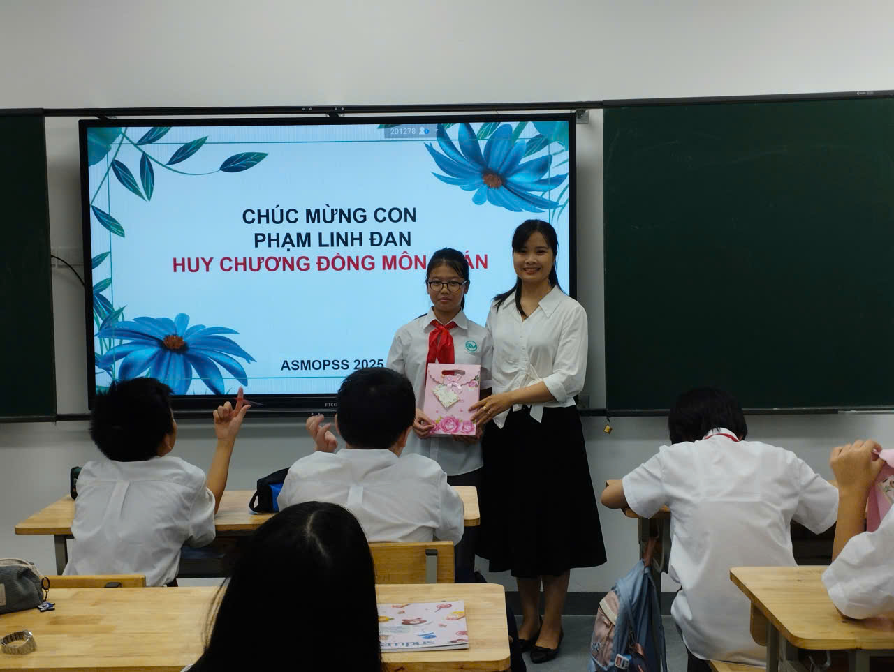 Niềm vui của Thảo Ngân càng nhân lên khi không chỉ cá nhân em gặt hái thành tích, mà tập thể lớp 6A9 cũng ghi dấu ấn rực rỡ: Học sinh Hoàng Trường Giang: Huy chương Bạc môn Khoa học Tự nhiên, Huy chương Đồng môn Toán; Học sinh Phạm Linh Đan: Huy chương Đồng môn Toán; Học sinh Lê Danh Hoàng: Huy chương Đồng môn Toán.