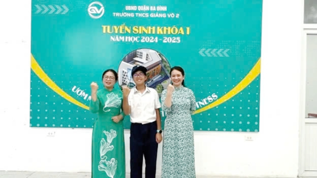 Minh Quân nhận được sự động viên của Ban giám hiệu trường THCS Giảng Võ 2