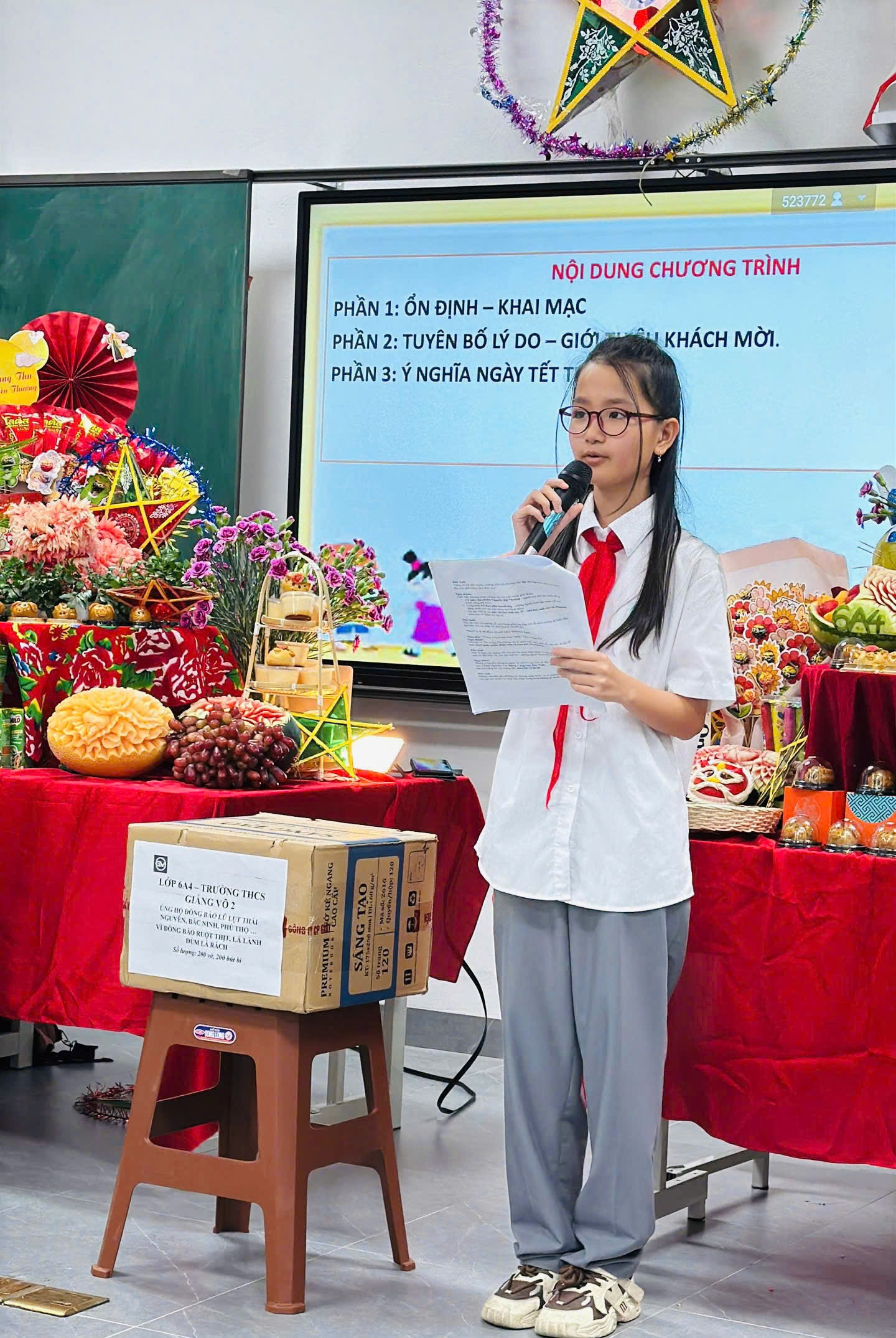 Buổi tiệc trung thu hôm nay của lớp 6A4 trở nên đặc biệt hơn bao giờ hết nhờ sự kết hợp đầy ý nghĩa của chương trình thiện nguyện “Trăng yêu thương – Hướng về miền bão lũ”. Không chỉ dừng lại ở những trò chơi vui nhộn hay những chiếc bánh nướng, bánh dẻo truyền thống, các bạn học sinh đã cùng nhau quyên góp sách vở, quần áo, đồ dùng học tập và cả một phần tiền tiết kiệm của mình. Tất cả đều xuất phát từ mong muốn sẻ chia khó khăn, gửi gắm yêu thương đến các bạn nhỏ đang chịu ảnh hưởng nặng nề bởi thiên tai. Dù những món quà ấy thật giản dị, không lớn về vật chất, nhưng lại chất chứa tình cảm chân thành, thể hiện tinh thần tương thân tương ái, truyền thống “lá lành đùm lá rách” và sự đồng cảm sâu sắc của tập thể 6A4. Trong không khí xúc động ấy, bạn lớp trưởng Trần Ngọc Khuê chia sẻ: “Trong khi chúng ta đang vui đón Trung thu tại đây, ở ngoài kia, các bạn nhỏ ở Thái Nguyên, Cao Bằng, Lạng Sơn, Bắc Ninh…vẫn đang phải gánh chịu hậu quả nặng nề của những đợt mưa bão và lũ lụt. Mỗi tờ tiền nhỏ là một ngọn nến sưởi ấm. Mỗi món quà nhỏ là một tia sáng yêu thương lan tỏa. Chúng ta tin rằng, ánh trăng 6A4 hôm nay sẽ vượt qua mưa gió để đến với các bạn nhỏ vùng cao – nơi ánh sáng niềm tin chưa bao giờ tắt”.