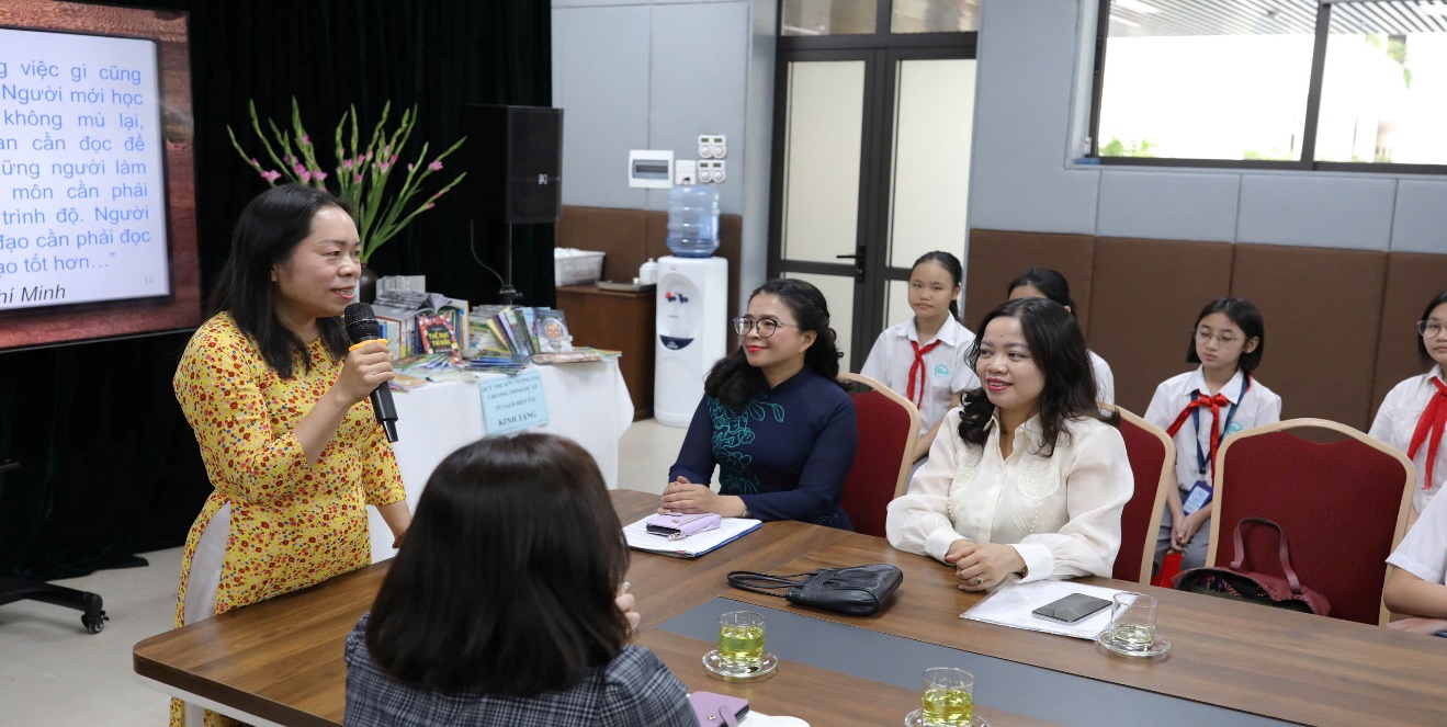 Hoạt động có sự tham gia đặc biệt của cô Vương Thị Bích Thủy – Nhà nghiên cứu giáo dục và lãnh đạo – người đã chia sẻ và trò chuyện cùng thầy trò nhà trường về vai trò quan trọng của việc đọc sách đối với học tập và phát triển tri thức.