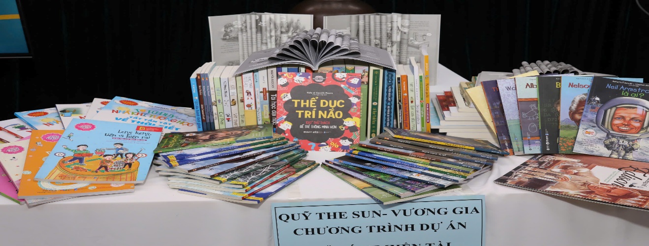 Cô Vương Thị Bích Thủy, đại diện Quỹ The Sun - Vương gia, trao tặng sách quý